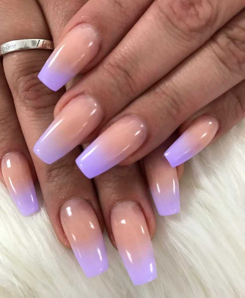 - Ею же размазывают границу между оттенками, после чего сушат ноготь.