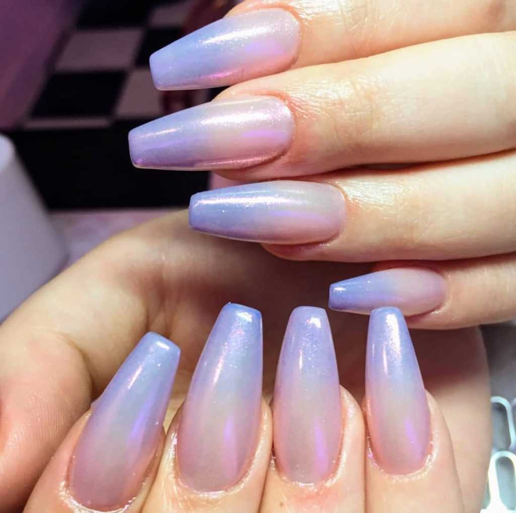Получается в результате использования лаков с перламутром и почти без красителей (разве что для придания лёгкого оттенка – розоватого или голубоватого).