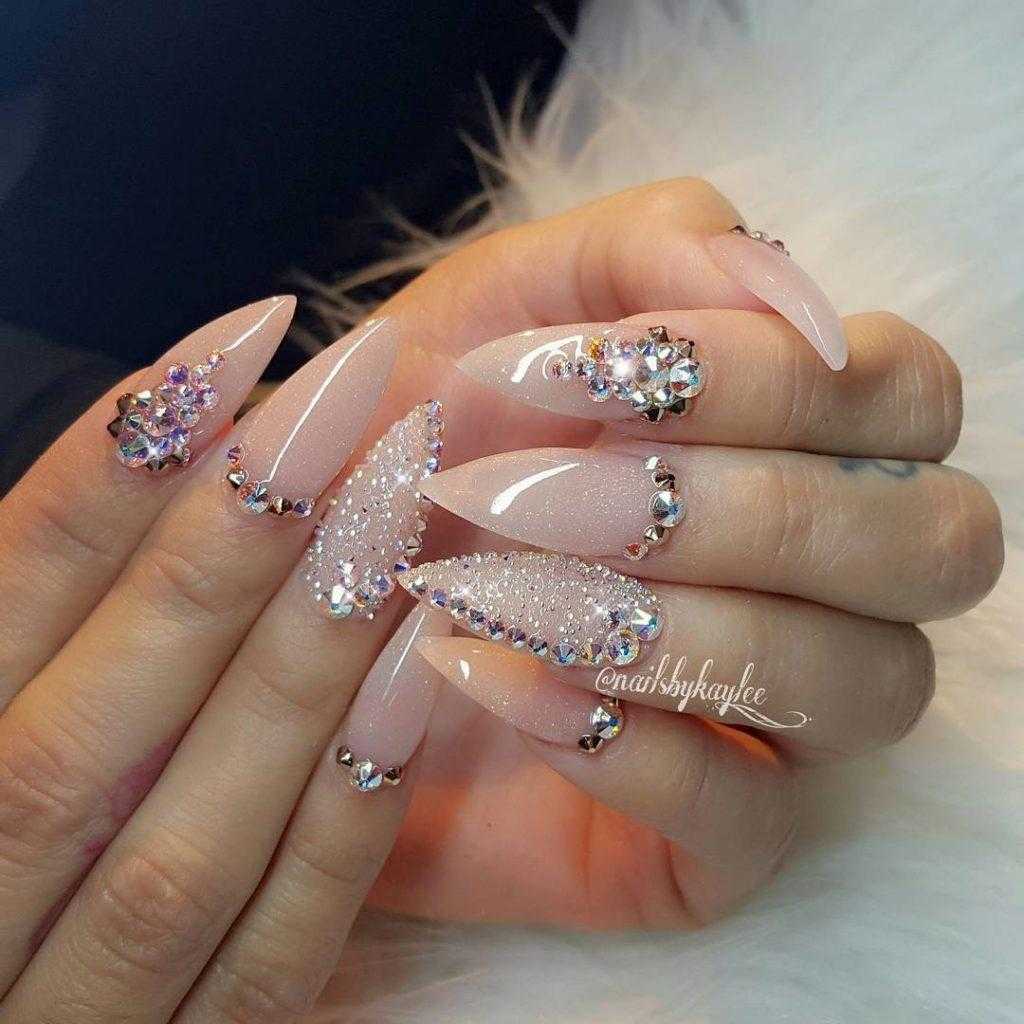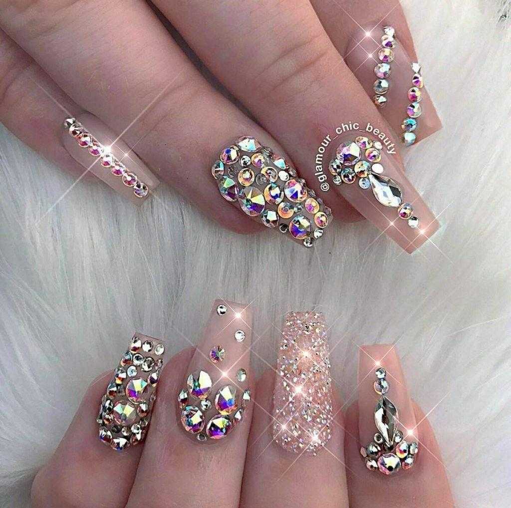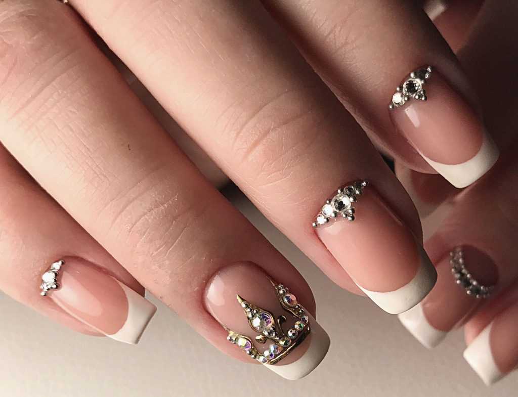 Нежный маникюр со стразами 2017 фото