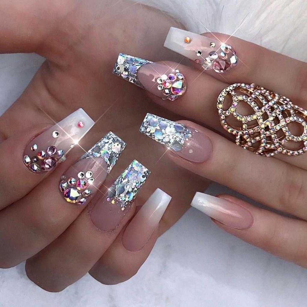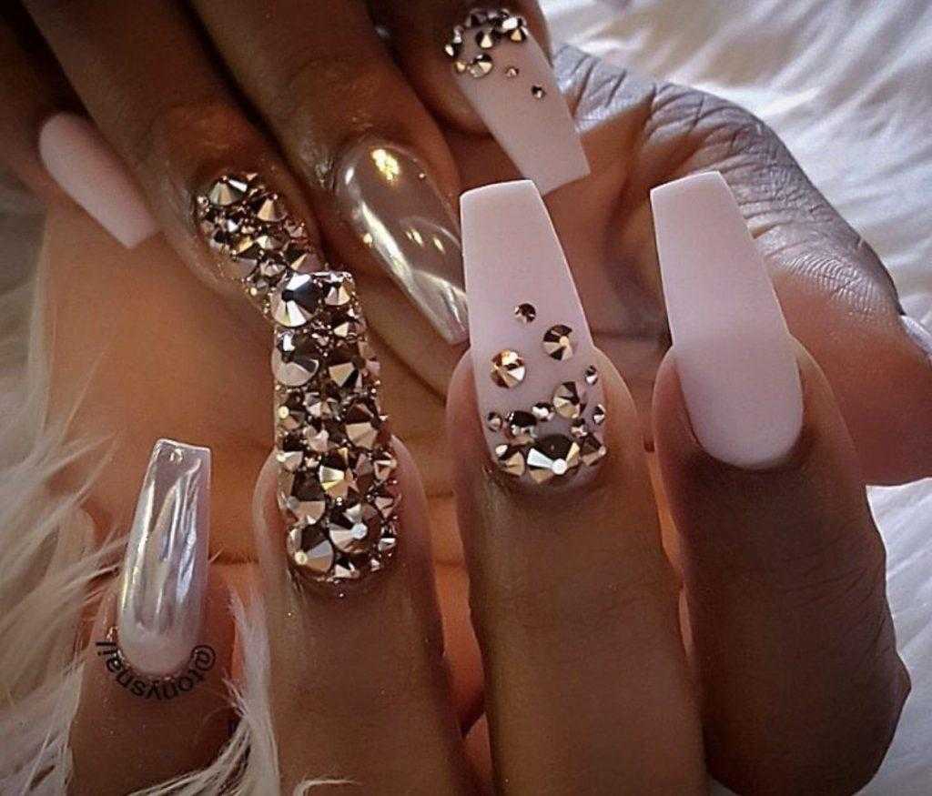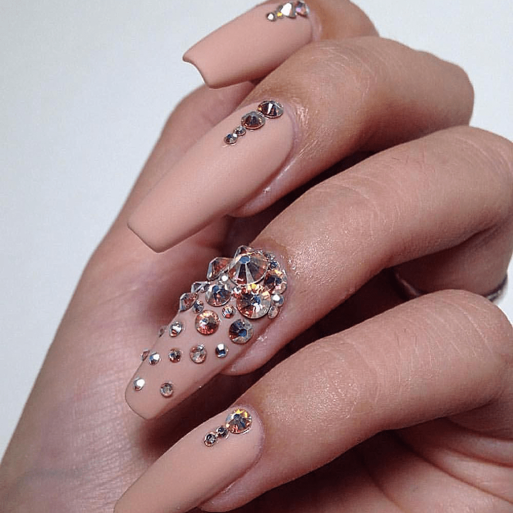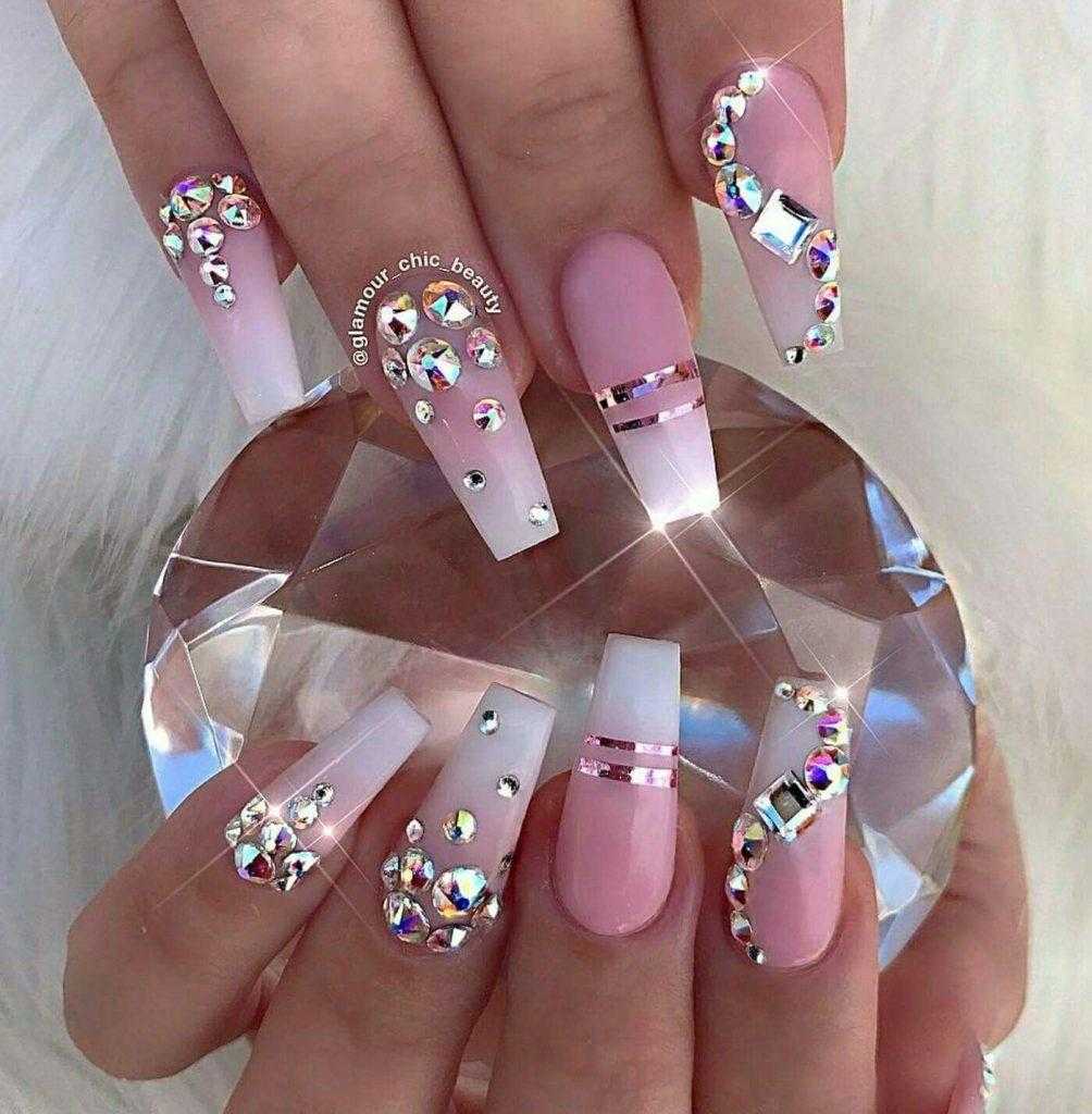 Возрастных ограничений тоже нет, он прекрасно смотрится и на женщине средних лет, и на юной барышне, предпочитающей скромный элегантный нейл-арт со стразами. Несомненное преимущество маникюра со стразами в том, что он прекрасно смотрится на ногтевых пластинах любой формы и длины. Нежный цвет самодостаточен и не нуждается в дополнительных элементах декора. Однако так же, как и другие универсальные классические оттенки, способен стать идеальной основой изысканного нейл-арта, открывая стилистам широкое поле деятельности.