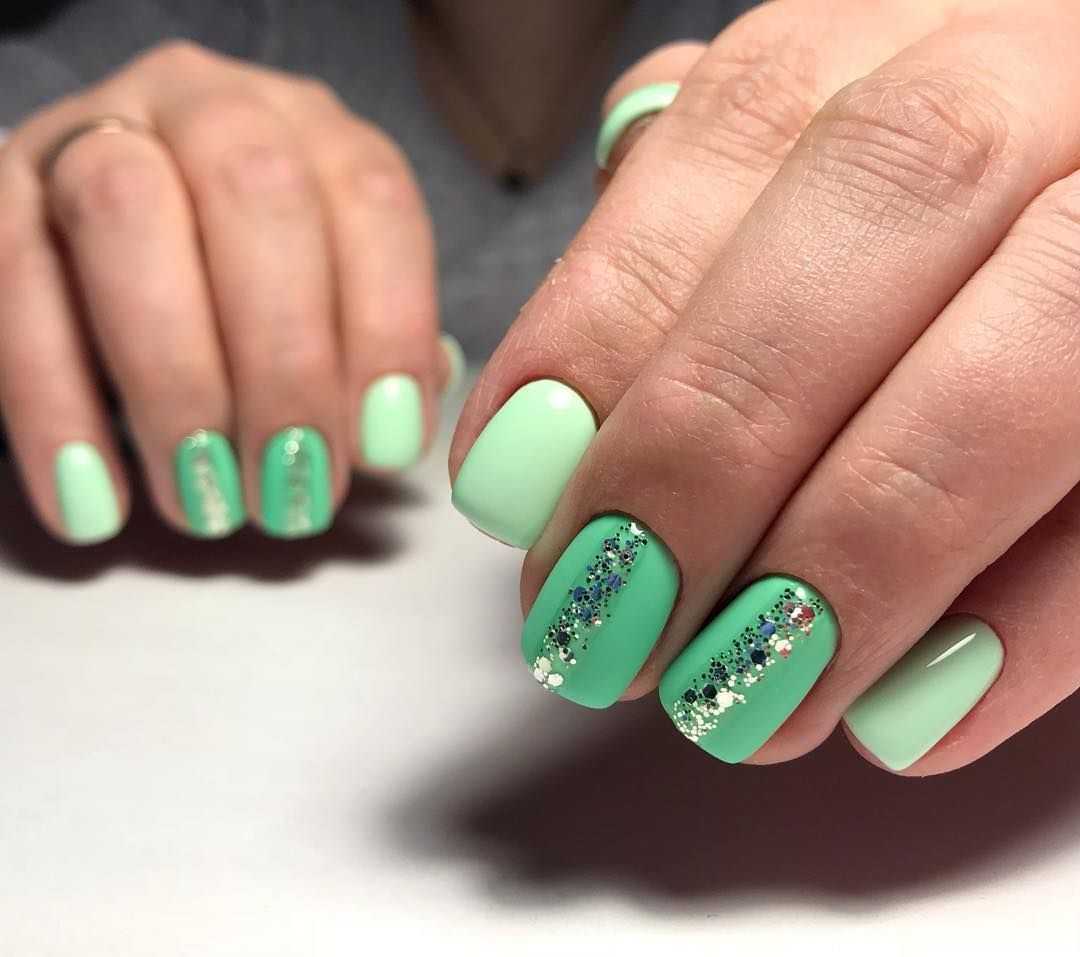 Разносторонность зеленого маникюра позволяет создавать уникальные и красивые варианты, используя сразу несколько оттенков одной палитры или выбрать подходящий по вкусу.