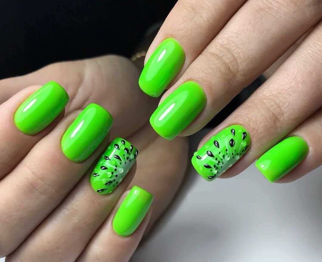 Незабываем также, что модные рисунки зеленым лаком это и фрукты, которым без зеленых оттенков не обойтись (лайм, киви, авокадо, кавун).
