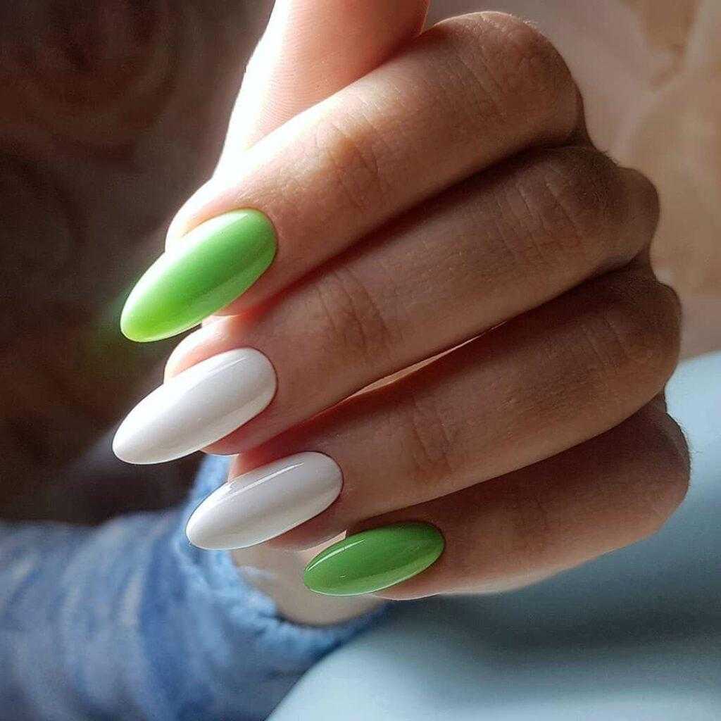 Чтобы они выглядели ещё эффектнее, можно выбрать дизайн разные руки, чередование оттенков (например, салатовый с белым, молочным, бежевым).