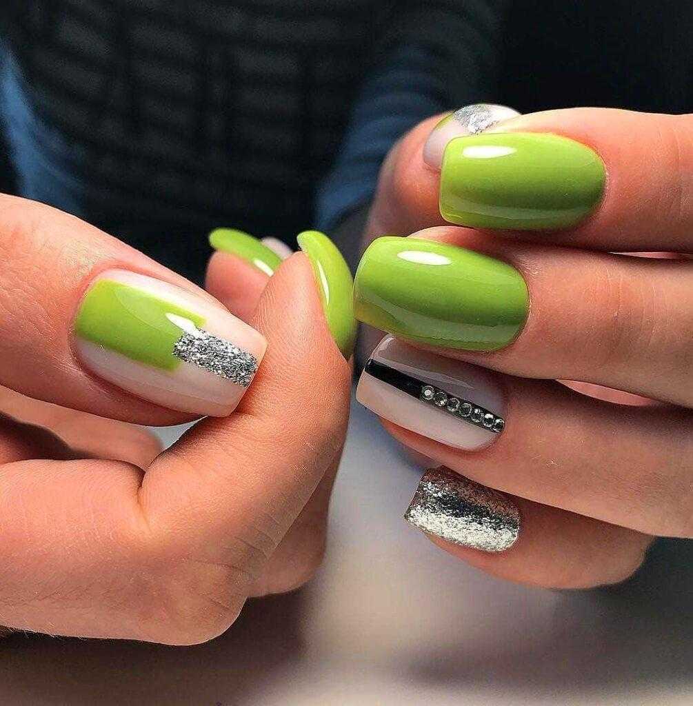 Интересные идеи дизайна зеленого маникюра на короткие ногти в 2022 году
