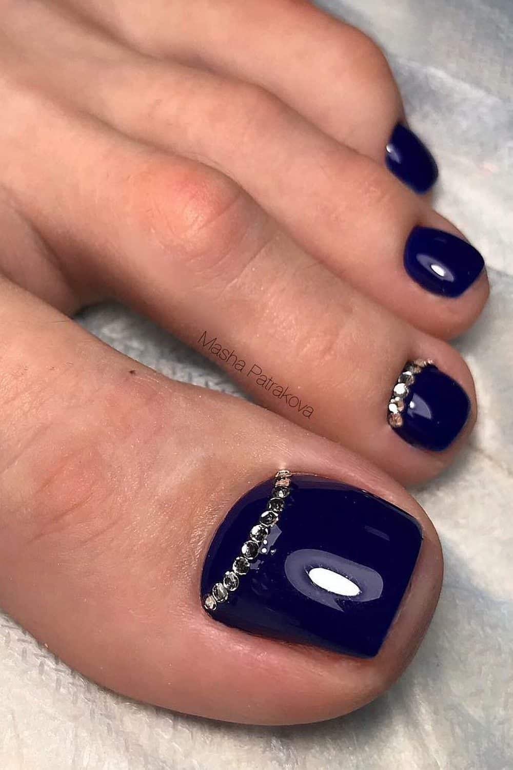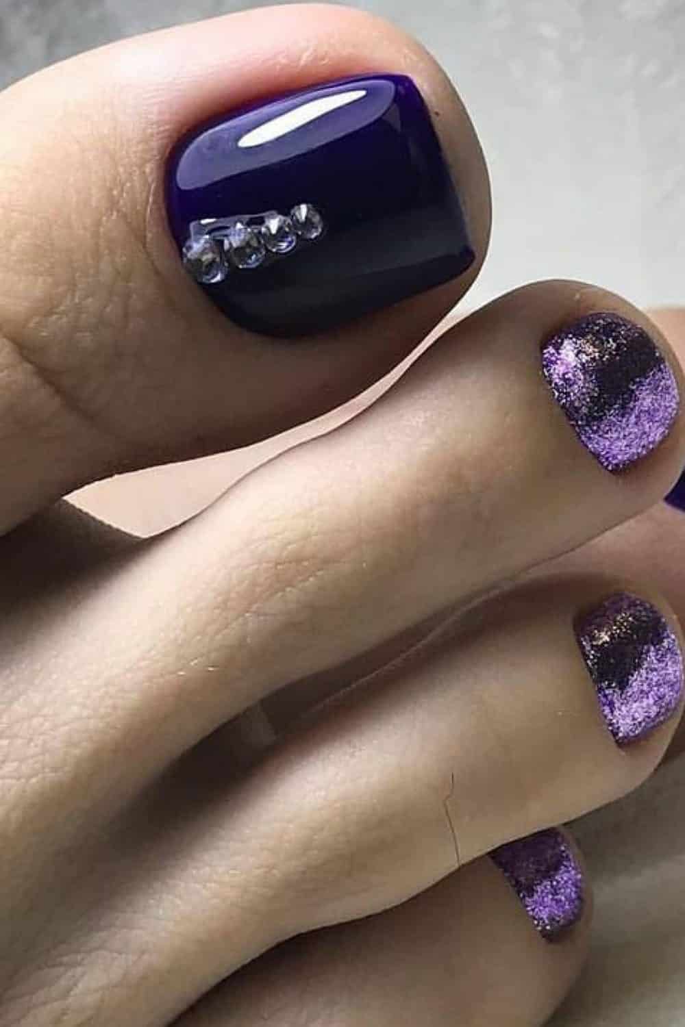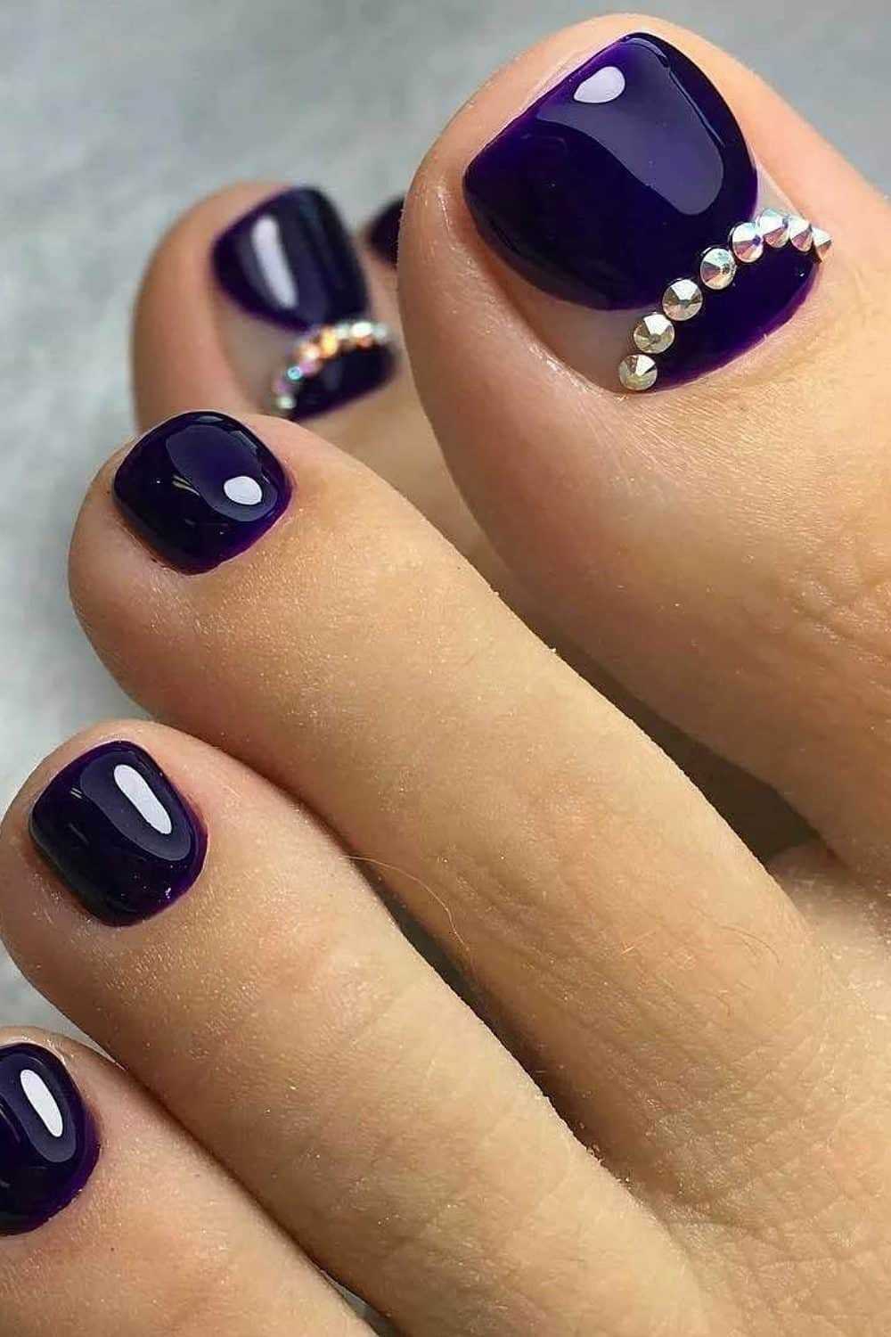 Фиолетовый педикюр со стразами от @mashapatrakova05 / Instagram