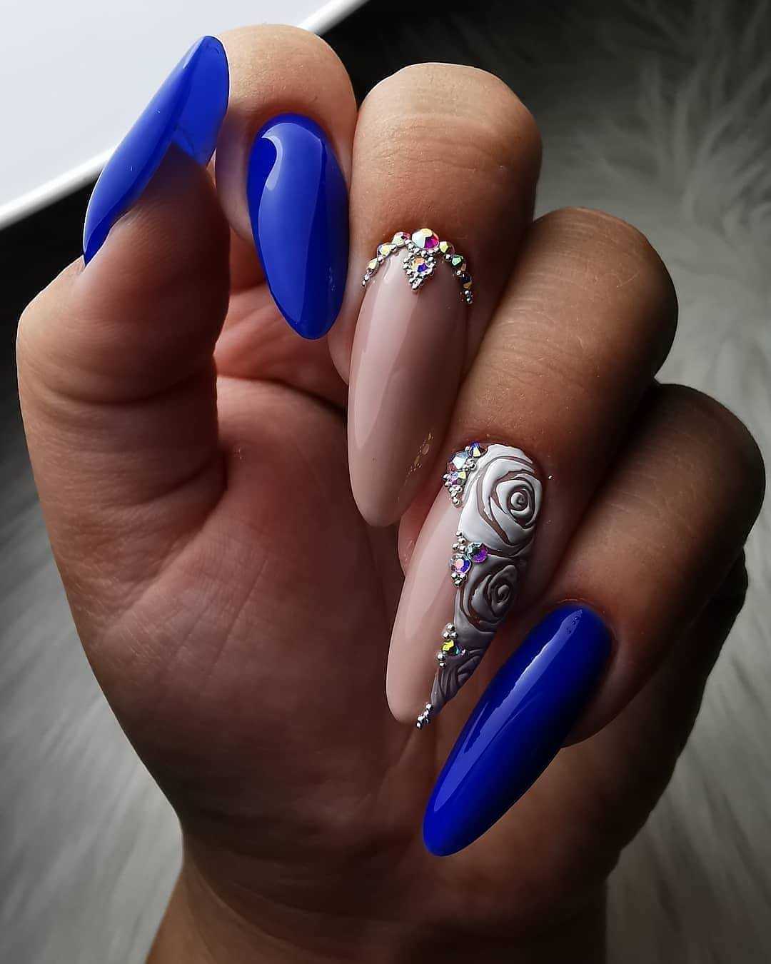 Стильные решения синего маникюра 2023 для увеличенной длины