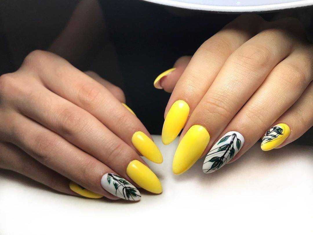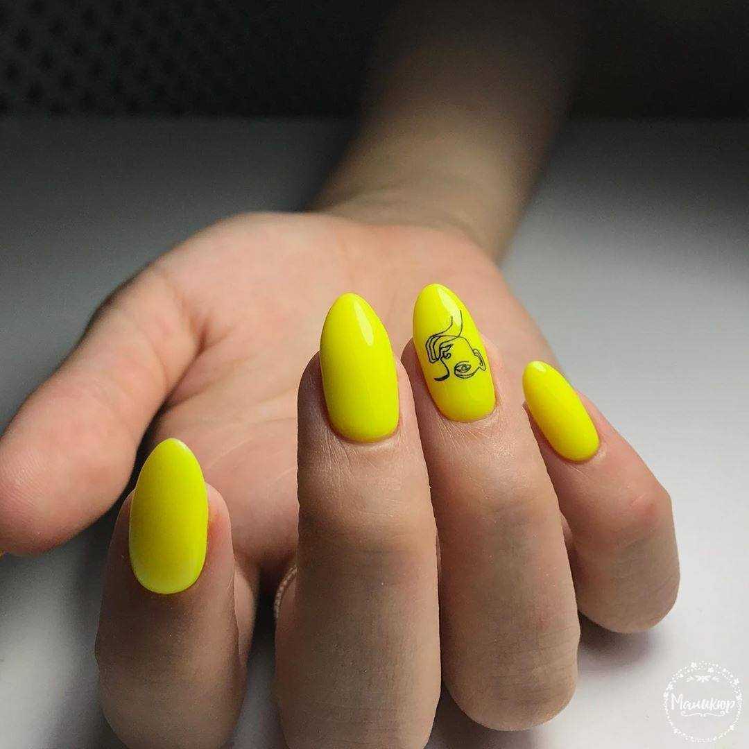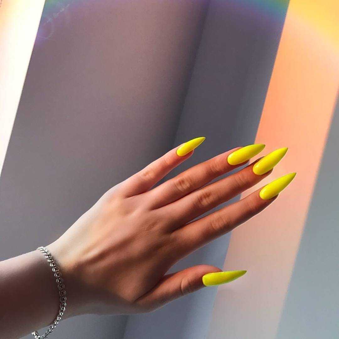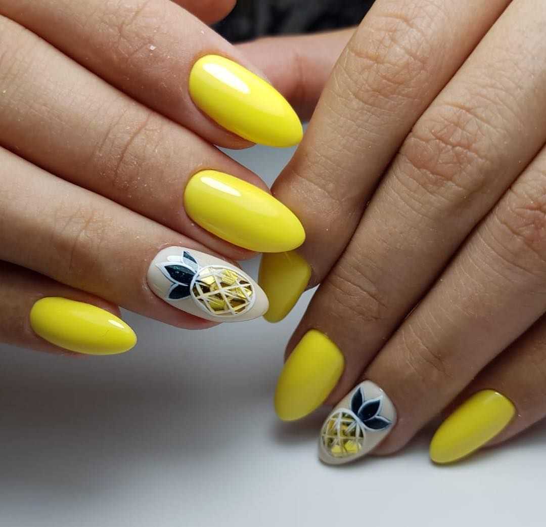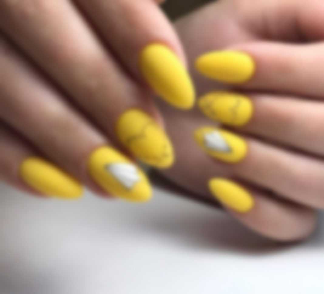 Эта форма ногтей позволяет обладательницам экспериментировать с дизайнами в трендовых тонах. Стильно смотрится градиент, причем переход можно делать в рамках одного оттенка желтого, просто меняя его насыщенность от бледного у основания ногтевого ложа к яркому краешку.