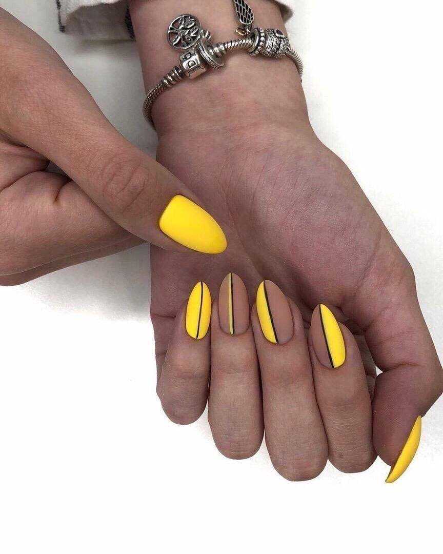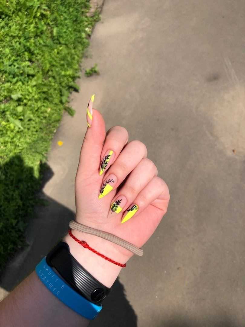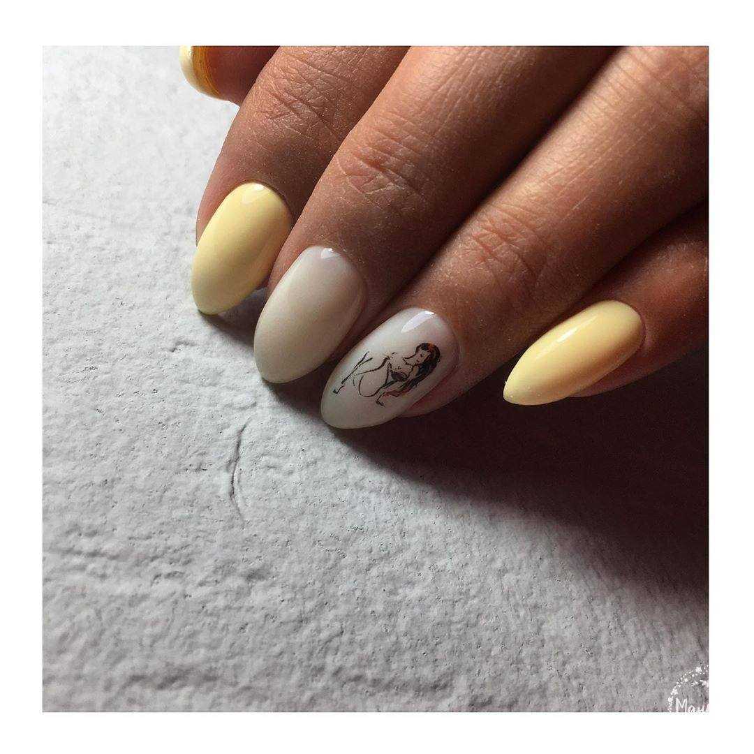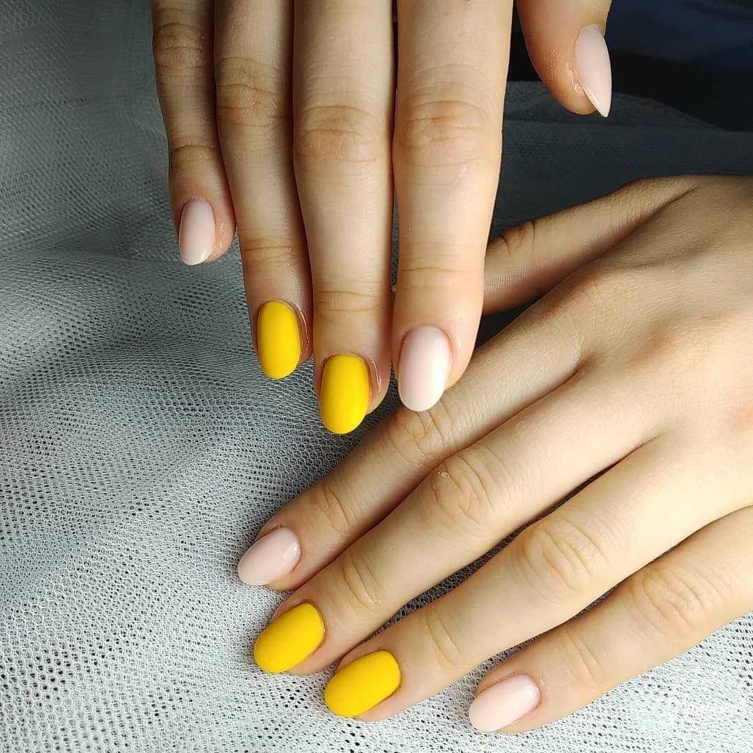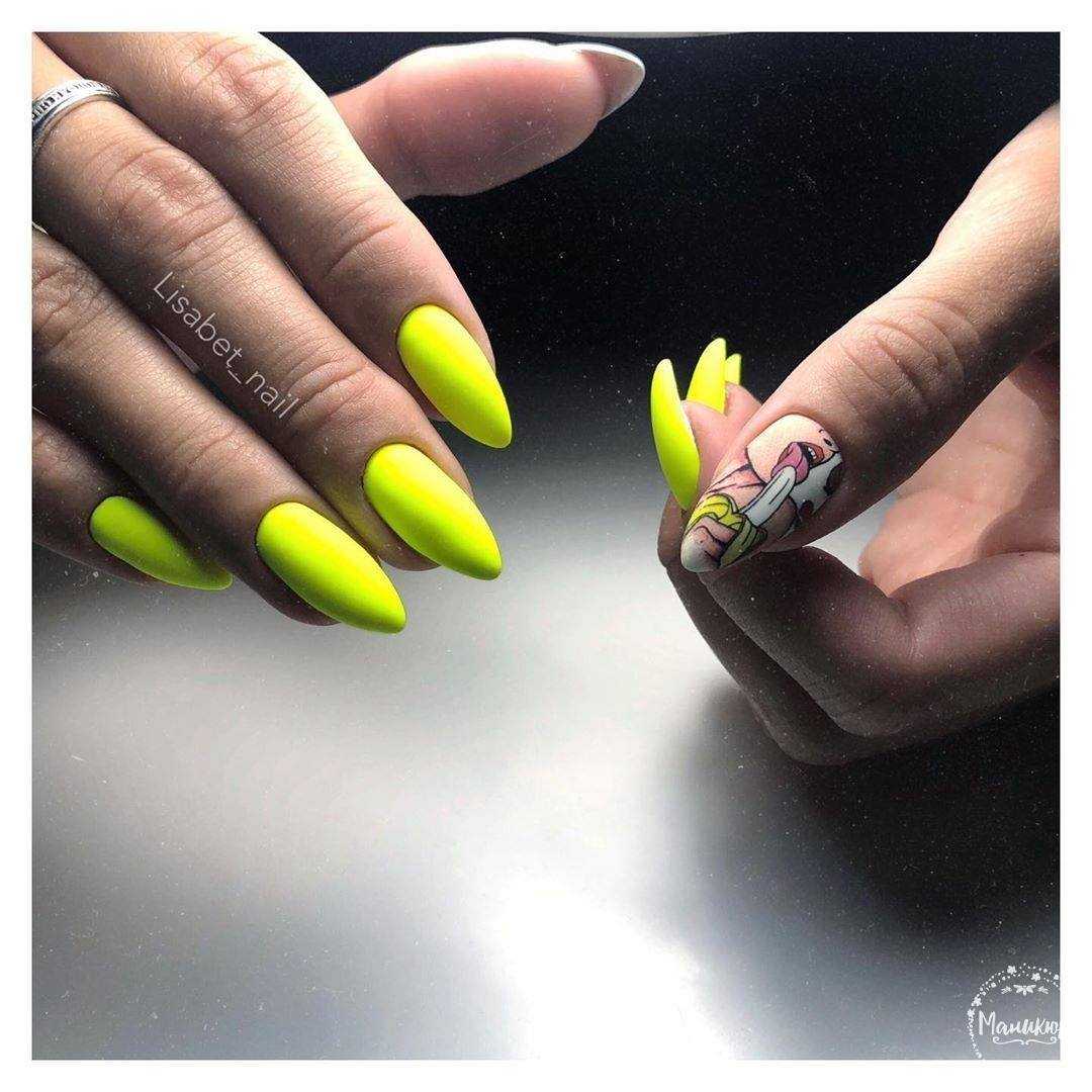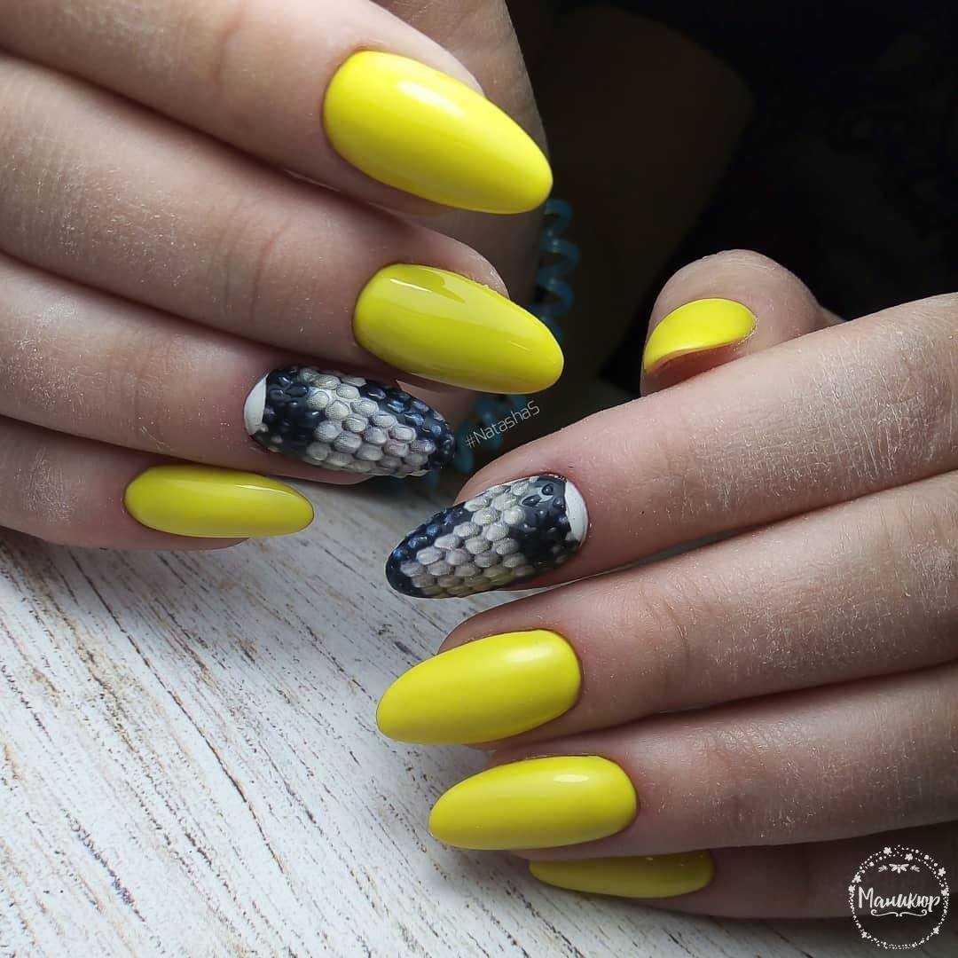 Эта форма ногтей позволяет обладательницам экспериментировать с дизайнами в трендовых тонах. Стильно смотрится градиент, причем переход можно делать в рамках одного оттенка желтого, просто меняя его насыщенность от бледного у основания ногтевого ложа к яркому краешку.