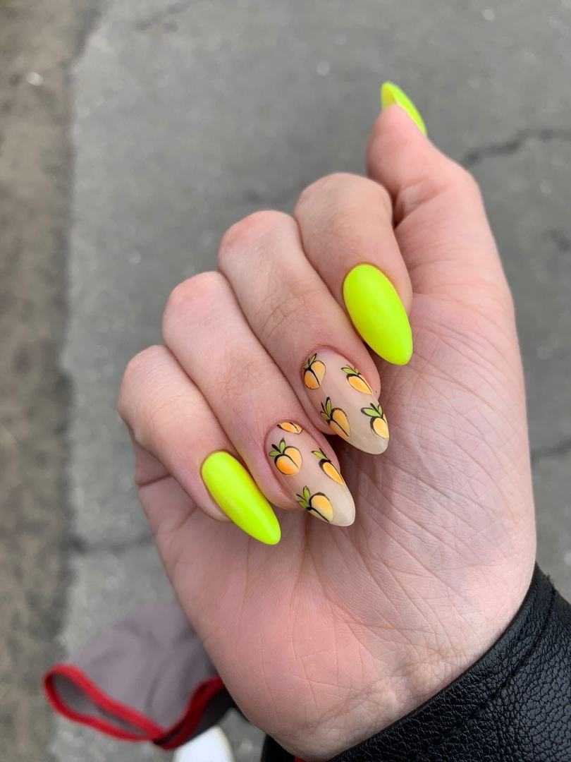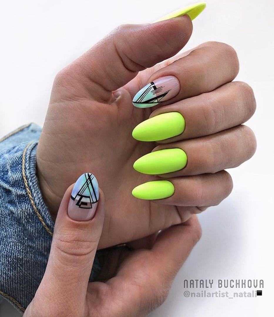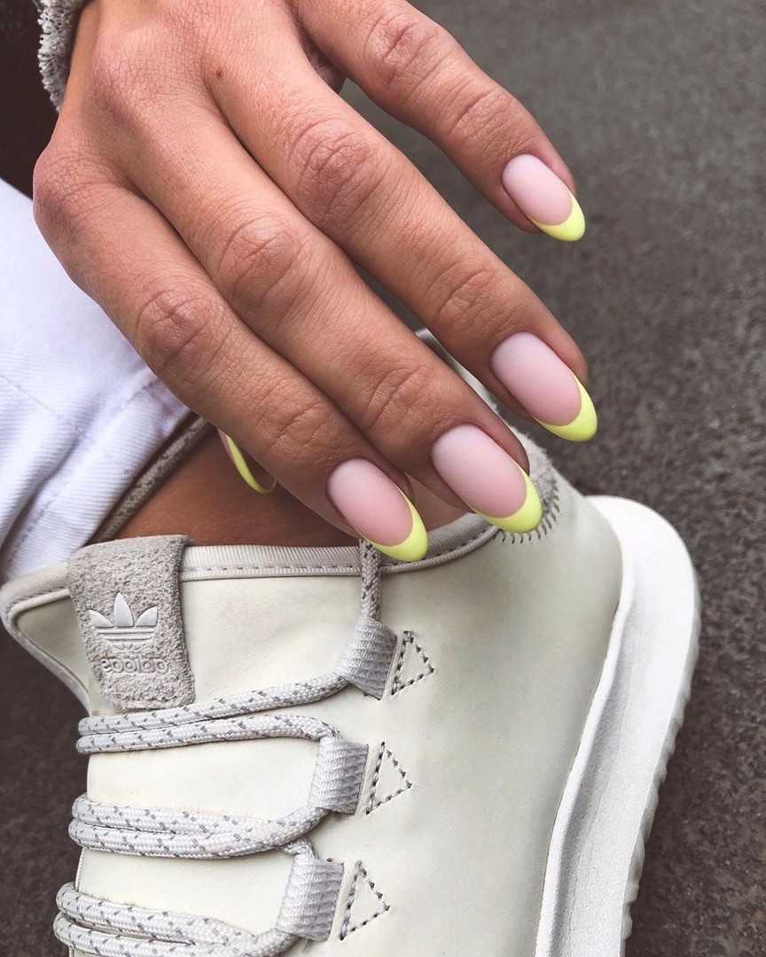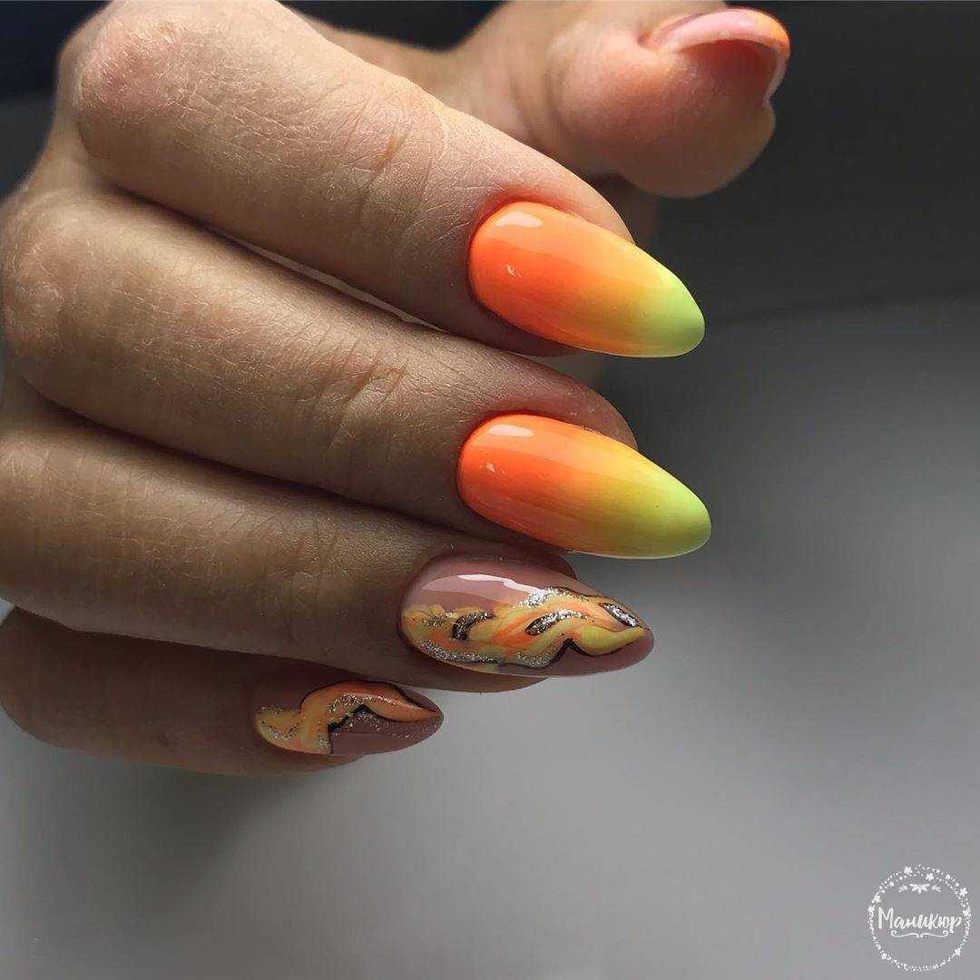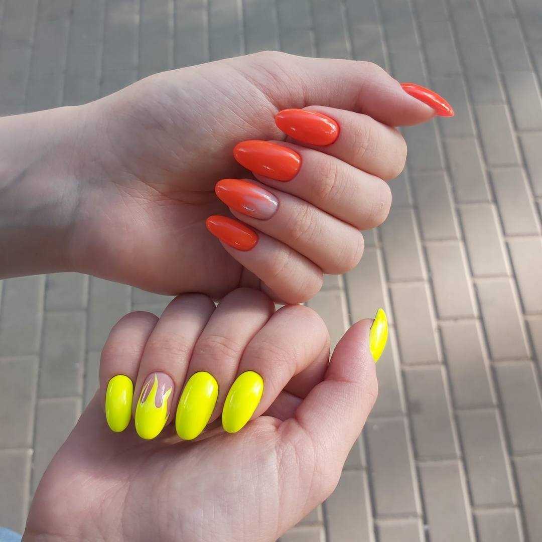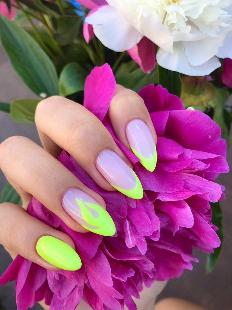Эта форма ногтей позволяет обладательницам экспериментировать с дизайнами в трендовых тонах. Стильно смотрится градиент, причем переход можно делать в рамках одного оттенка желтого, просто меняя его насыщенность от бледного у основания ногтевого ложа к яркому краешку.