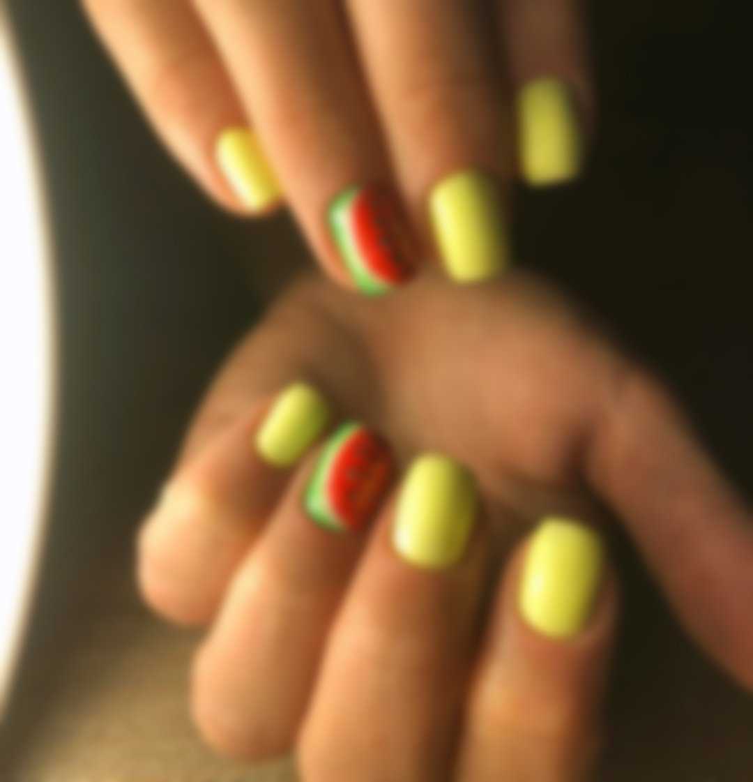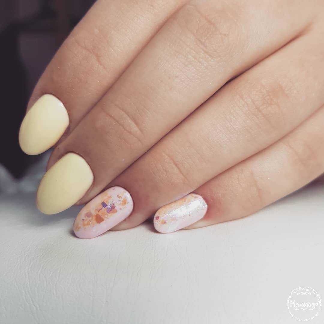 Солнечный цвет способен скрыть мелкие дефекты ногтевой пластины, будь то мелкие трещинки, неровный рельеф или в случаях, когда ногти расслаиваются.