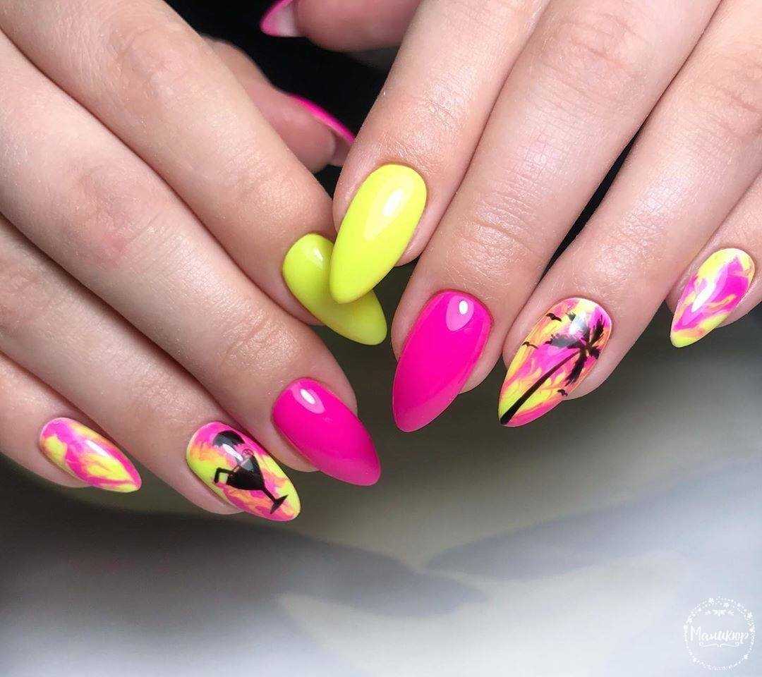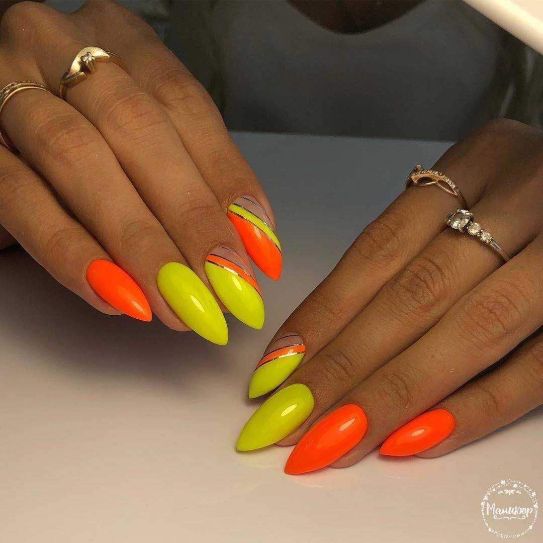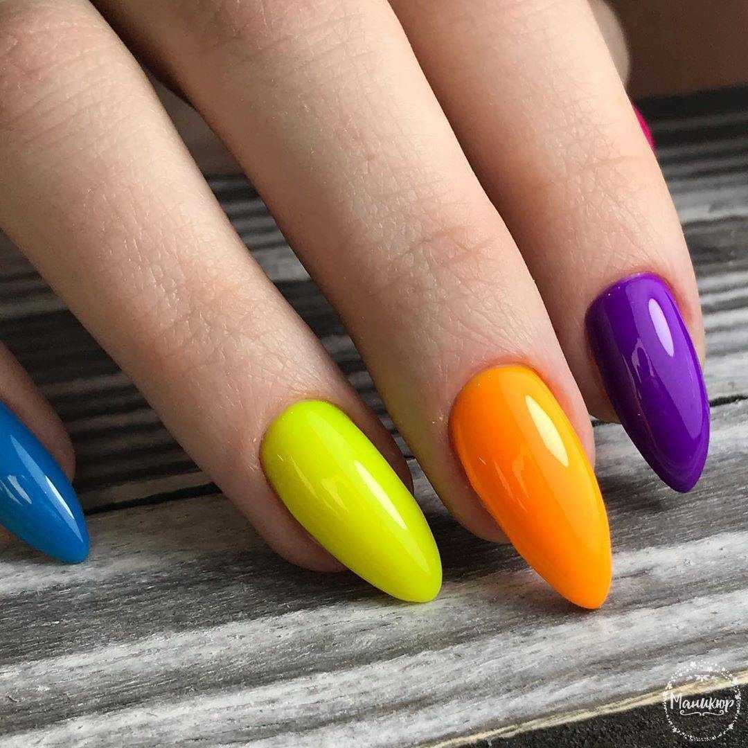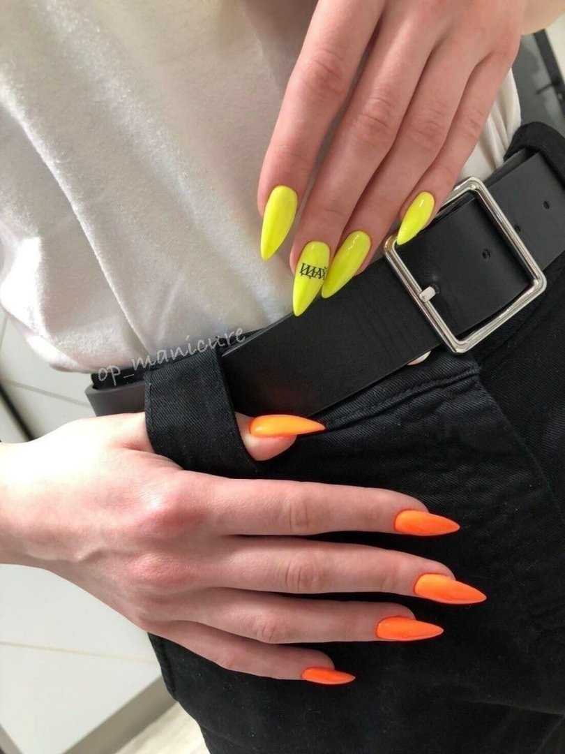 Для длинных ногтей эксперты по стилю советуют приглушенные или пастельные тона. Если хочется неоновый, яркий, то пусть он будет в виде акцента на 1-2 ногтях, пока остальные будут покрашены в нейтральный цвет.