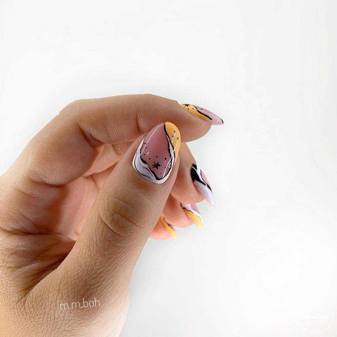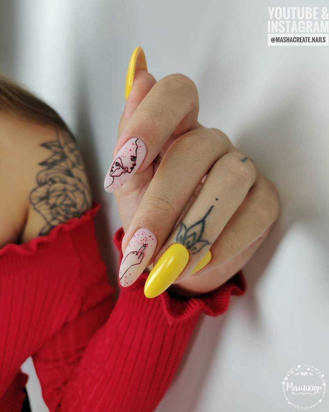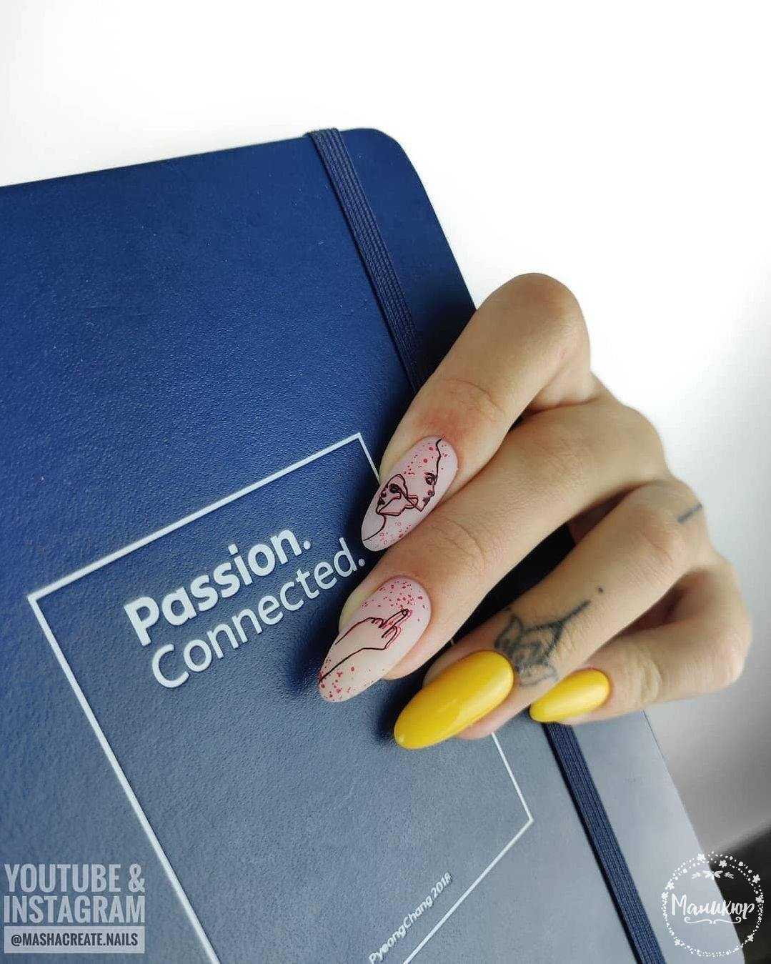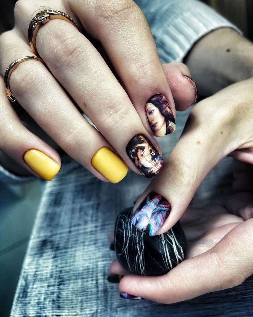 Художественные рисунки, оригами, принты будут трендами нейл-арта 2021 года. Их начнут активно использовать и в сочетании с желтым покрытием. Особенно модными они будут на коротких ногтях.