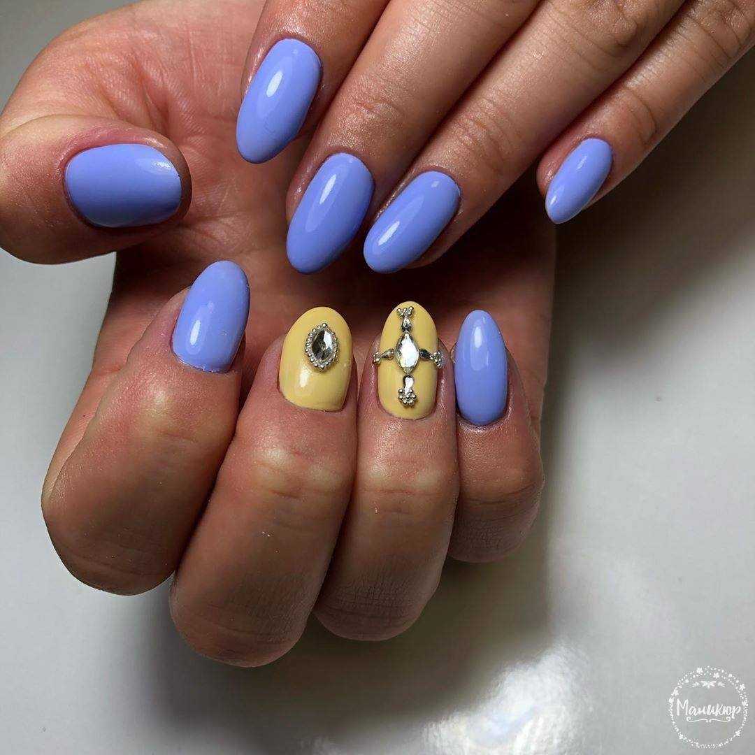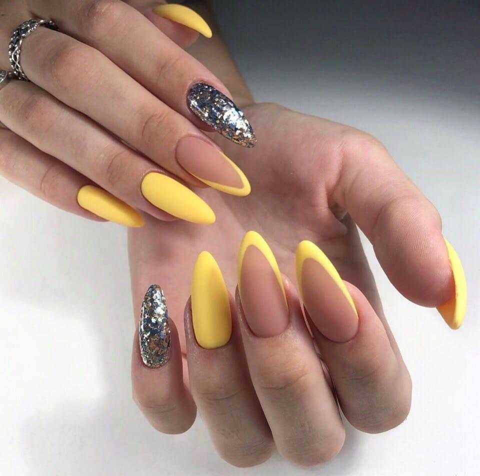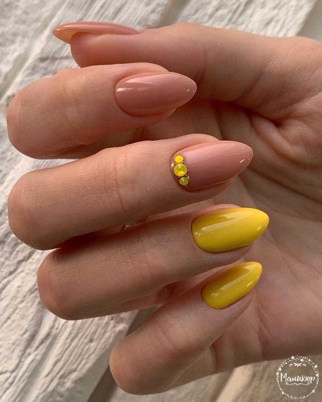 Желтый — один из цветов маникюра, который одинаково хорошо сочетается как с золотом, так и с серебром. Выбирая стразы или блестки, необходимо ориентироваться на оттенок покрытия ногтей. С яркими или горчичными тонами шикарно смотрится золото. Чем бледнее или холоднее оттенок, тем органичнее выглядит комбинация с серебром.