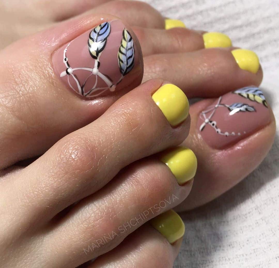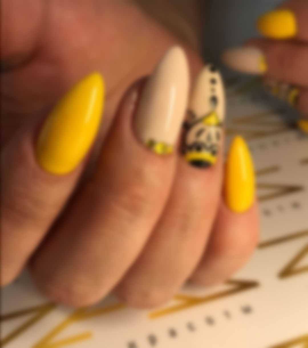 Бежевый с желтым педикюр с дизайном от @_marina_nail_vrn / Instagram