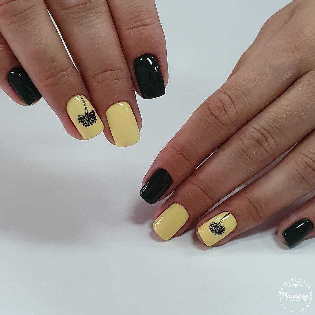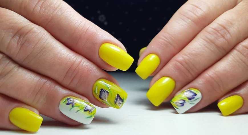 Для создания популярного желтого маникюра актуальны не только насыщенные солнечные оттенки, но и приглушенные пастельные и пудровые. За счет особой яркости цвета желтый маникюр будет замечательно смотреться и в виде однотонного покрытия. Но при желании можно сочетать его с белым, черным, серым, розовым, зеленым и лиловым.