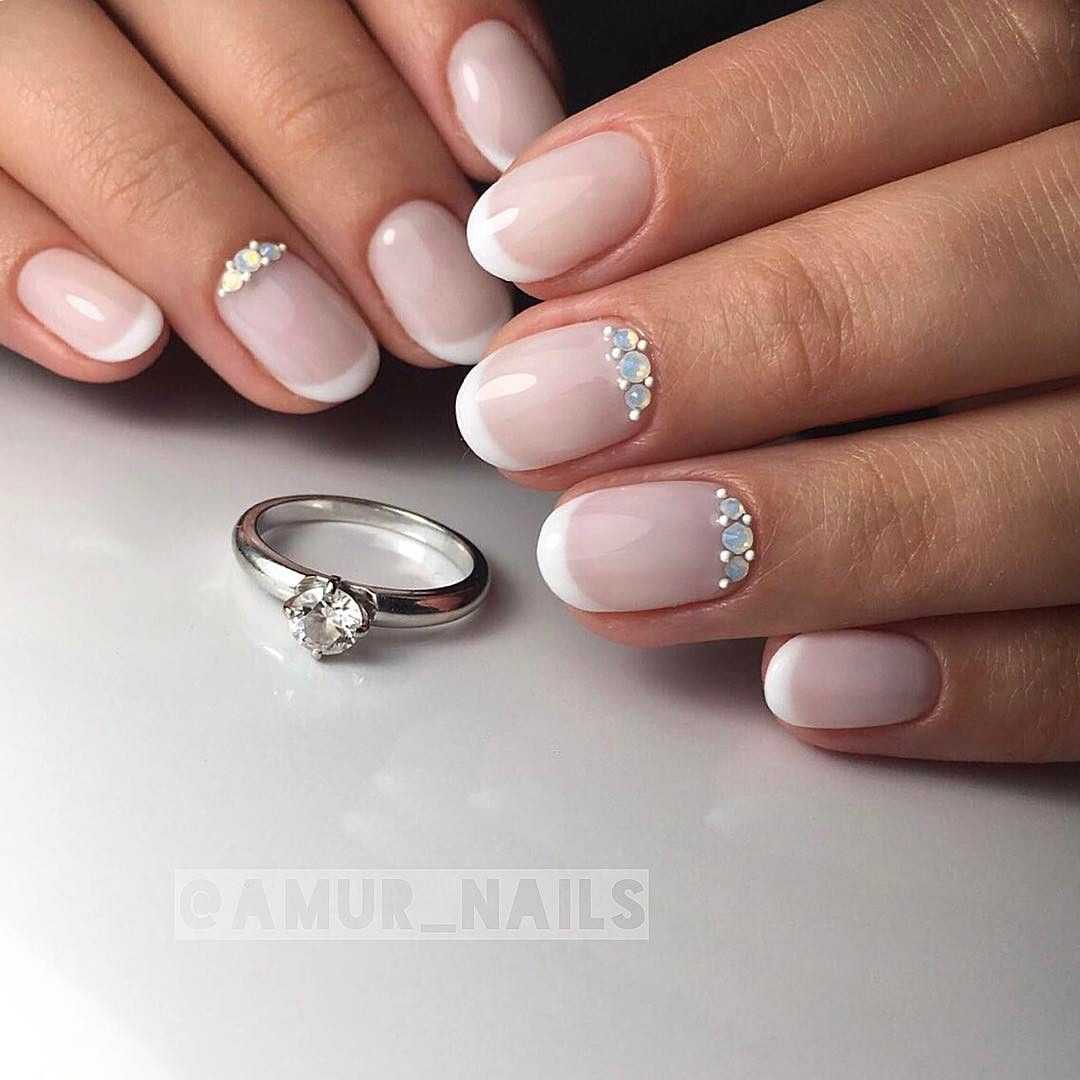 На коротких овальных ногтях идеально будет смотреться классический французский маникюр. При его создании следует придерживаться правил: