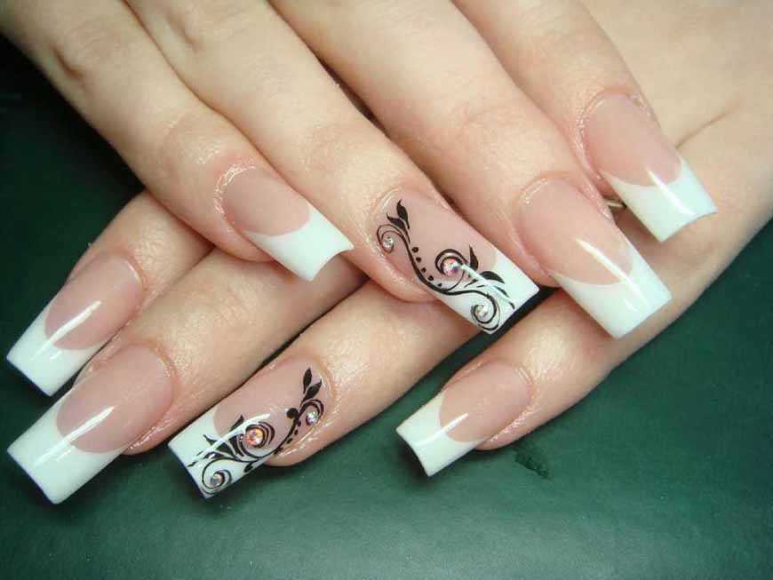 Французский маникюр для таких вариантов послужит отличным фоновым решением модного дизайна.