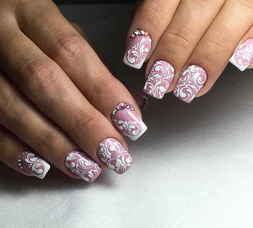 Повышенным спросом пользуются уникальные вариации френча, созданные с применением художественного таланта профессионального мастера. Традиционной «улыбке» добавляются вензеля, ажурные орнаменты, кружевные завитки, флористические элементы, аэрография.