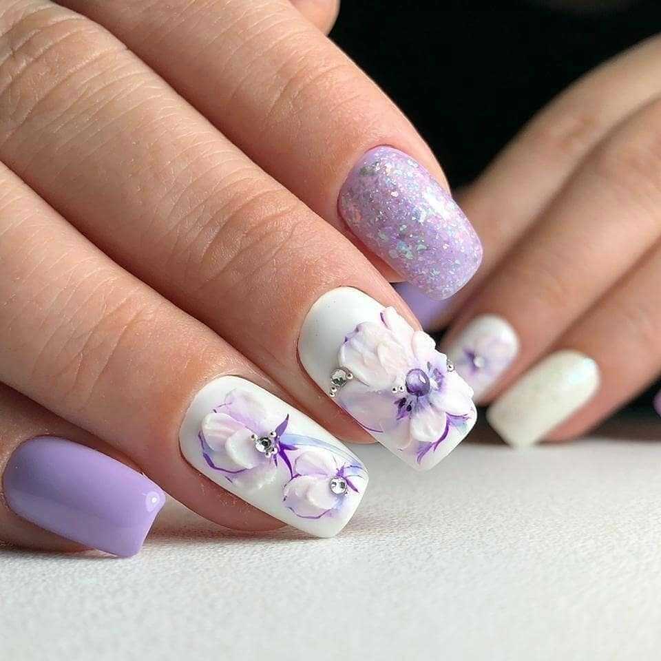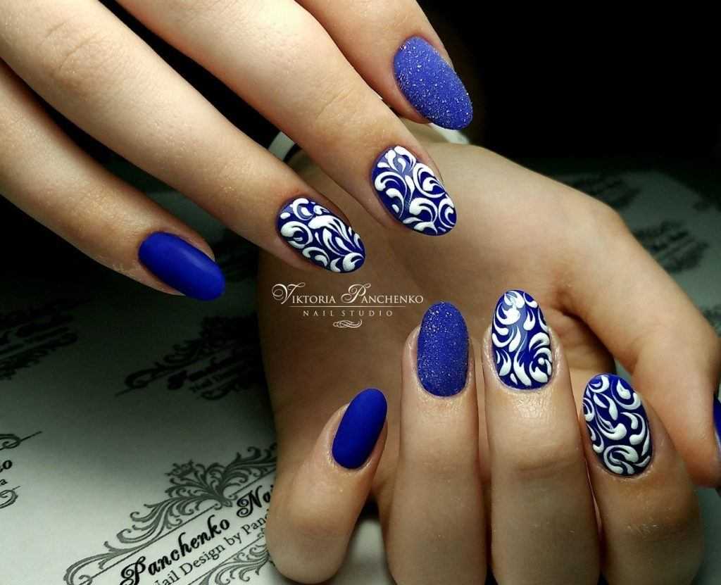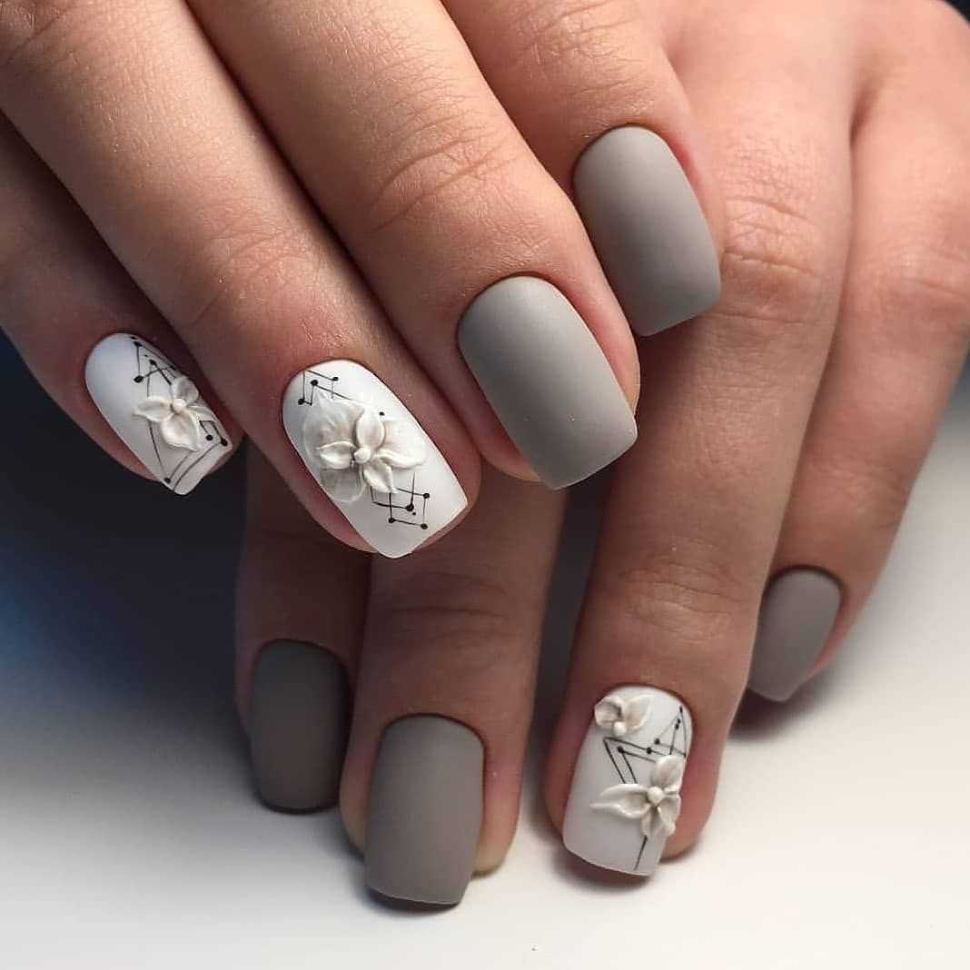 Женственный и нежный матовый маникюр в комбинации с кружевом или цветочным рисунком — лучший выбор для романтичных натур. Узоры выполняются разными способами: от сложной трудоемкой ручной росписи и стемпинга, до простых наклеек-слайдеров, которые смотрятся также очень эффектно.