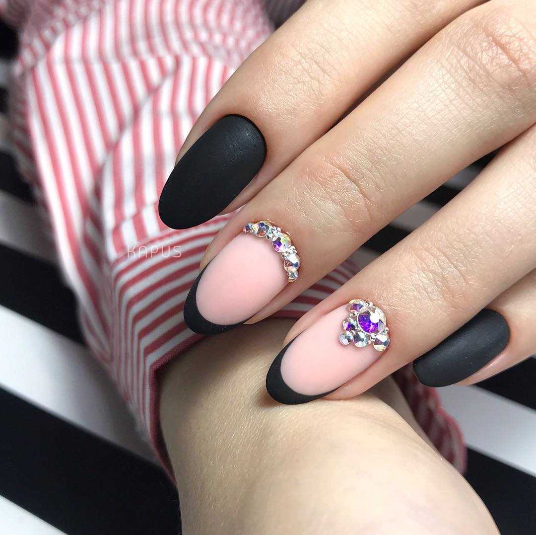 На заметку ценительниц натуральных данных, черные тона матового не разочаруют и вас. Рекомендуемая длина- короткая или средняя. Форма ногтей может быть любой – все зависит от желания и состояния ногтевой пластины.