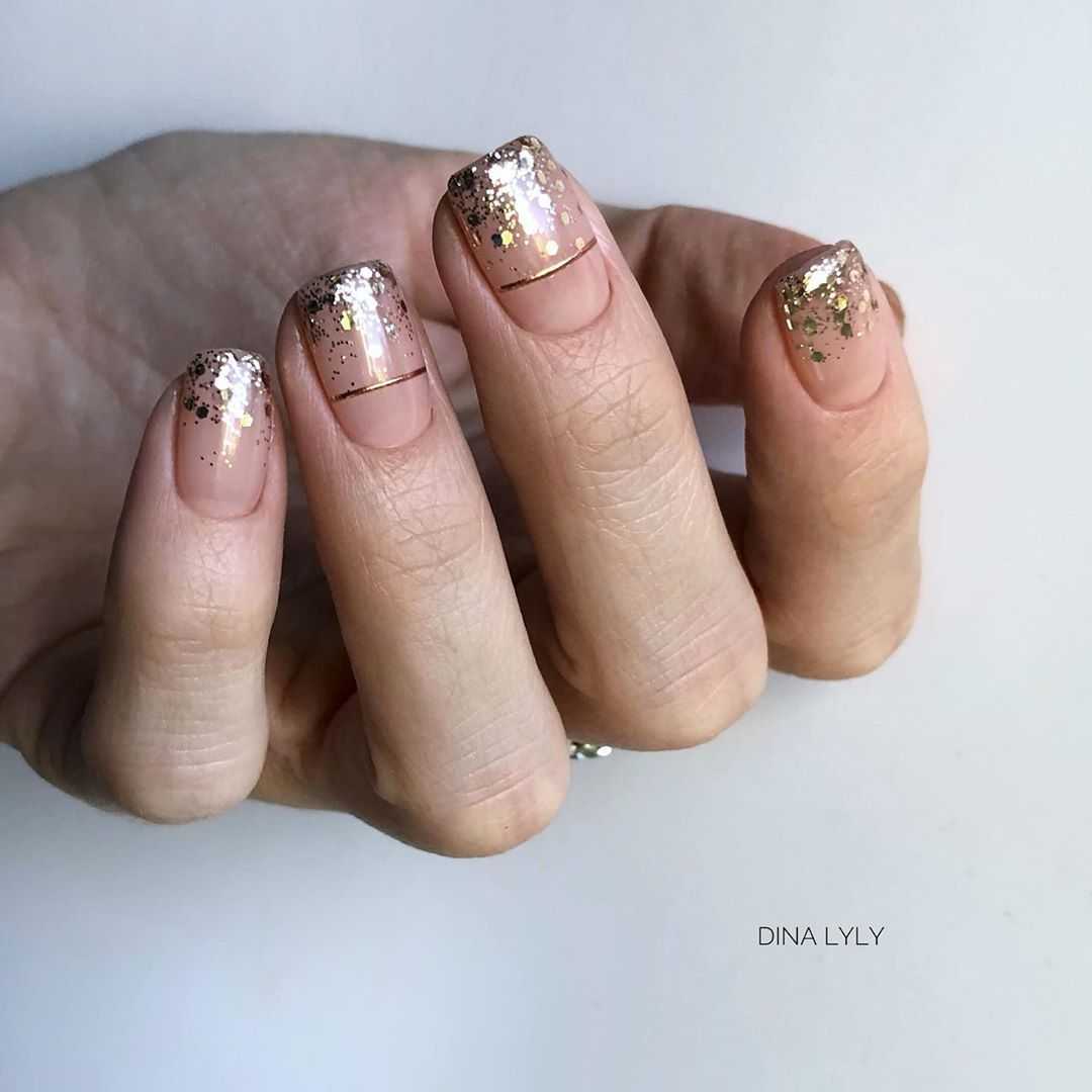 Обратите внимание на французский дизайн ногтей в необычной цветовой палитре. Например, сочетание нежно-розового оттенка отлично дополнит золотистые цвета, например, из блесток, а также голубой, красный, черный, синий френч тоже будут актуальными в сезоне 2021