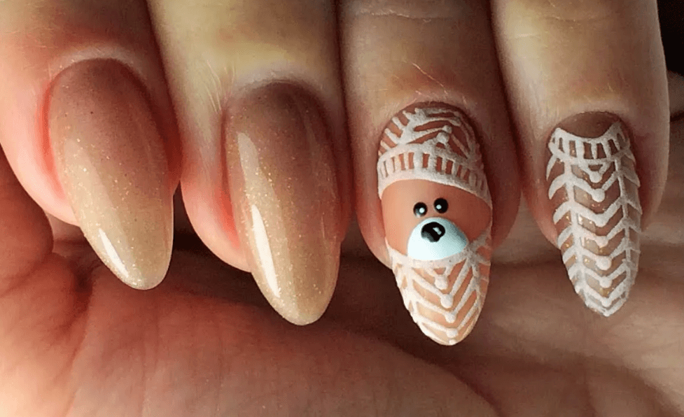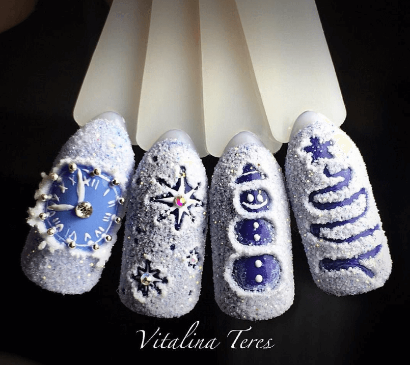 Сейчас же этот вид покрытия активно применяется для новогодних дизайнов. Ведь белая пудра так шикарно имитирует снег и мех.