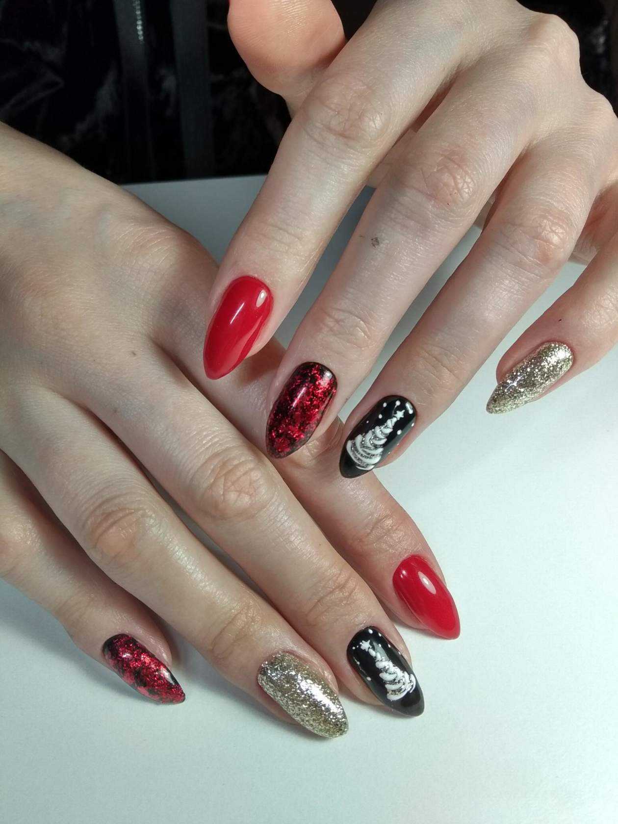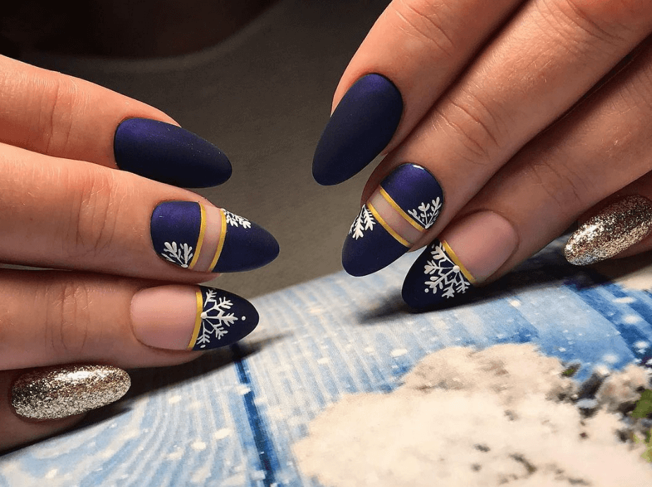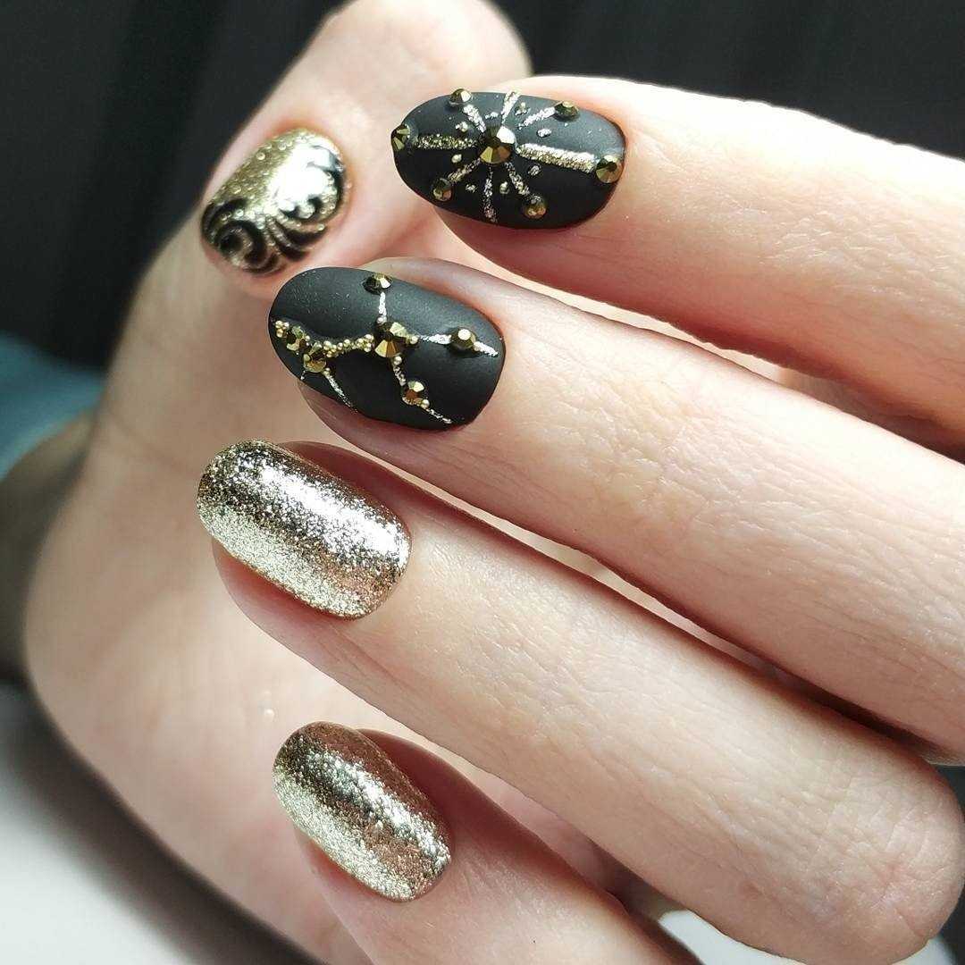 Когда дело доходит до зимы, многие начинают думать о темных тонах. Зимой 2022 года будет актуален черный цвет в сочетании с блестками. На втором месте идут матовые ногти с праздничными рисунками. Также актуально будет сделать сочетание золотого и зеленого цветов с добавлением полосок и точек.