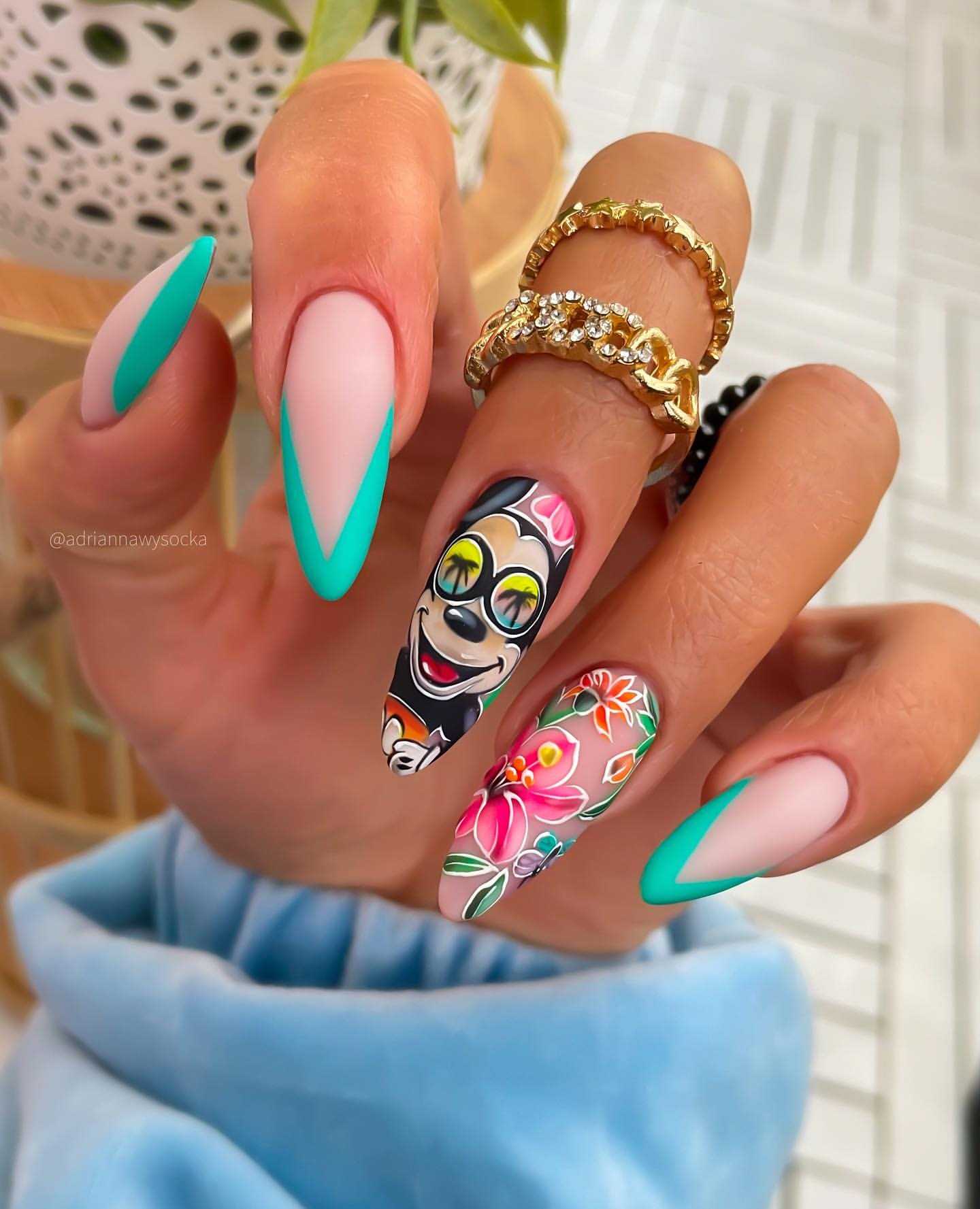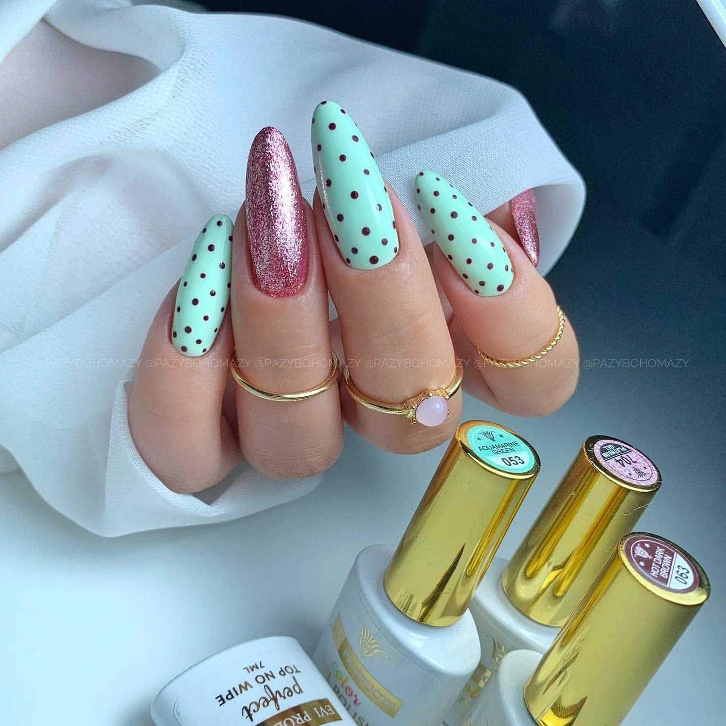 Спешим вам с полной уверенностью сообщить о том, что мятный цвет считается достаточно универсальным и легко комбинируемым с другими контрастными оттенками в маникюре. Для любительниц ярких ноготочков nail мастера предлагают в 2023 году попробовать сделать маникюр с комбинацией розового и мятного цвета. Мы вас уверяем, что это сочетание станет вашим фаворитом на долгие годы. Имея у себя под рукой мятный и розовый лак, можно сделать огромное количество разнообразных дизайнов маникюра, среди которых: