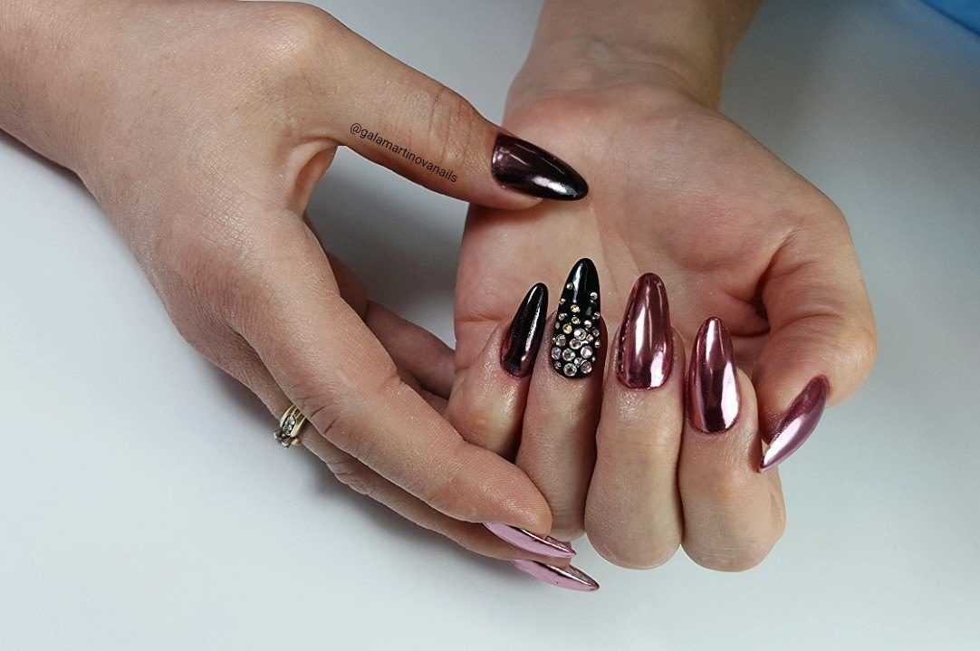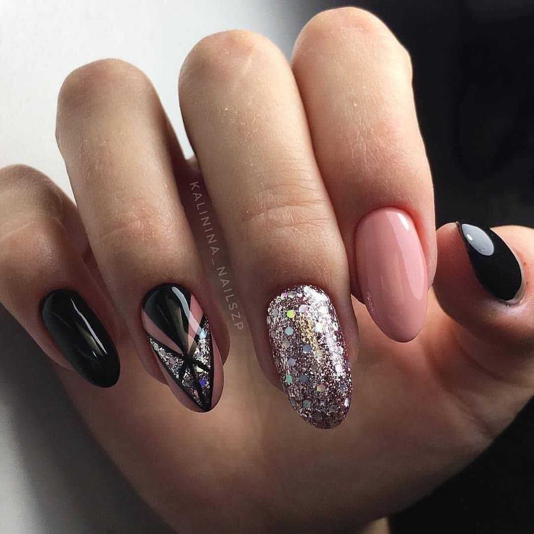 В завершение нашей публикации мы хотим предложить модницам несколько оригинальных идей миндалевидного маникюра, ведь иногда у каждой барышни случаются приступы апатии и всё привычное надоедает. Чтобы преобразить ноготки и создать что-нибудь «этакое» совсем не обязательно просиживать часами у монитора в поисках подходящих идей. У каждого мастера маникюра имеется в запасе несколько подобных решений, которые спасут ситуации. Среди актуальных предложений чудесные примеры оформления с россыпью блёсток и металлизированными полосками, потрясающий «пенный» маникюр с втиркой и блёстками, ноготки с элементами «негативного пространства» и сверкающих частиц, а также дизайн с гелем паутинкой на подложке из блёсток или невероятные абстрактные узоры. Впечатляет? С таким маникюром вы не только ощутите прилив энергии, но и почувствуете себя настоящей королевой!