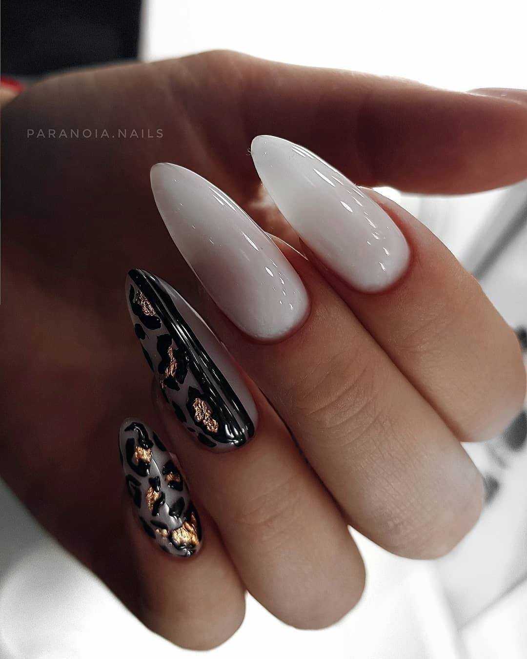 Хит 2020 года — молочный (полупрозрачный оттенок белого) также отлично уравновесит заостренные ноготки.
