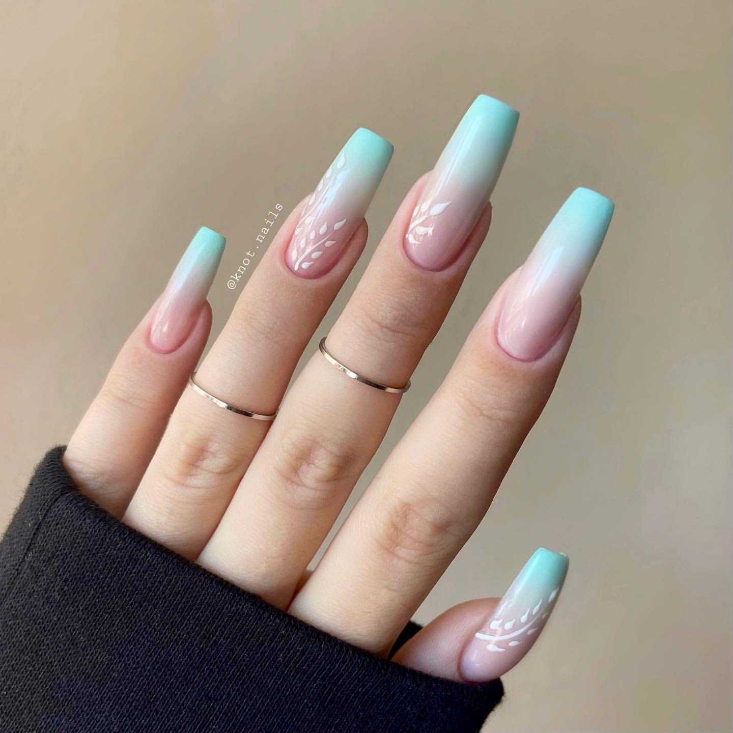 Дизайн ногтей, выполненный в технике омбре, все еще остается на лидирующих позициях. Этот нетривиальный и многогранный вариант маникюра выразительно смотрится на любой длине и с любой формой ногтей. На каждый день лучше комбинировать мятный цвет лака с базовым белым, а вот для курорта или праздничного мероприятия можно взять что-то по ярче, например, розовый, желтый или же фиолетовый оттенок. Вы можете использовать любое сочетание оттенков создавая свой индивидуальный дизайн для определенного события в своей жизни.
