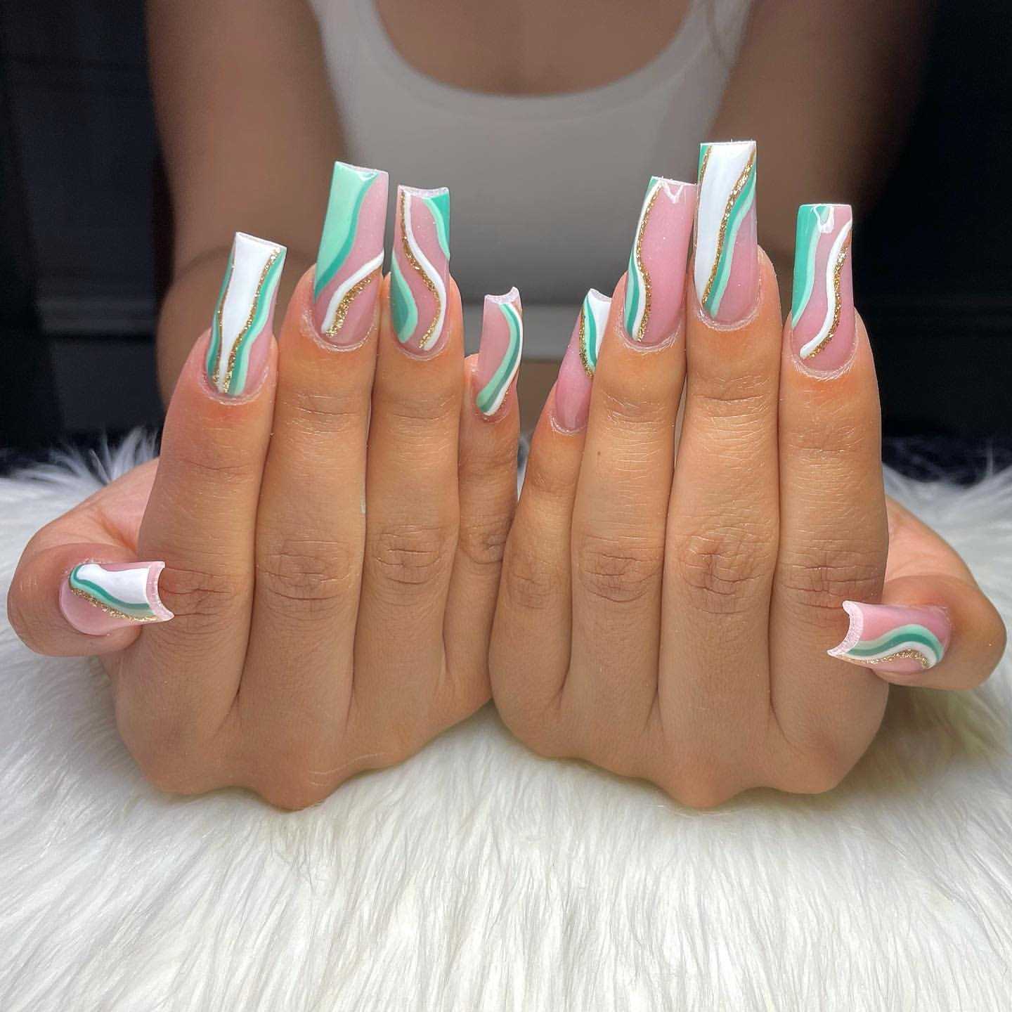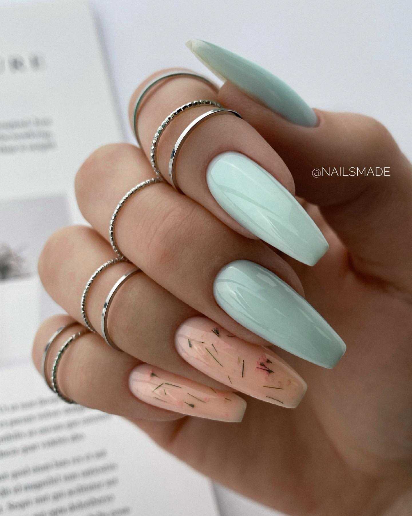 Если размышлять про дизайн ногтей в мятной цветовой гамме, то первое, что приходит на ум это звериный принт, цветочные очертания, минималистичные рисунки, градиент, а также многогранная геометрия. Для тех, что не может определиться с одним из дизайнов, мы предлагаем использовать сразу несколько. Например, комбинация: леопардовый принт + геометрия, или же цветочные узоры + абстракция. Любой из предложенных вариантов будет уместно и колоритно смотреться летом 2023 года.