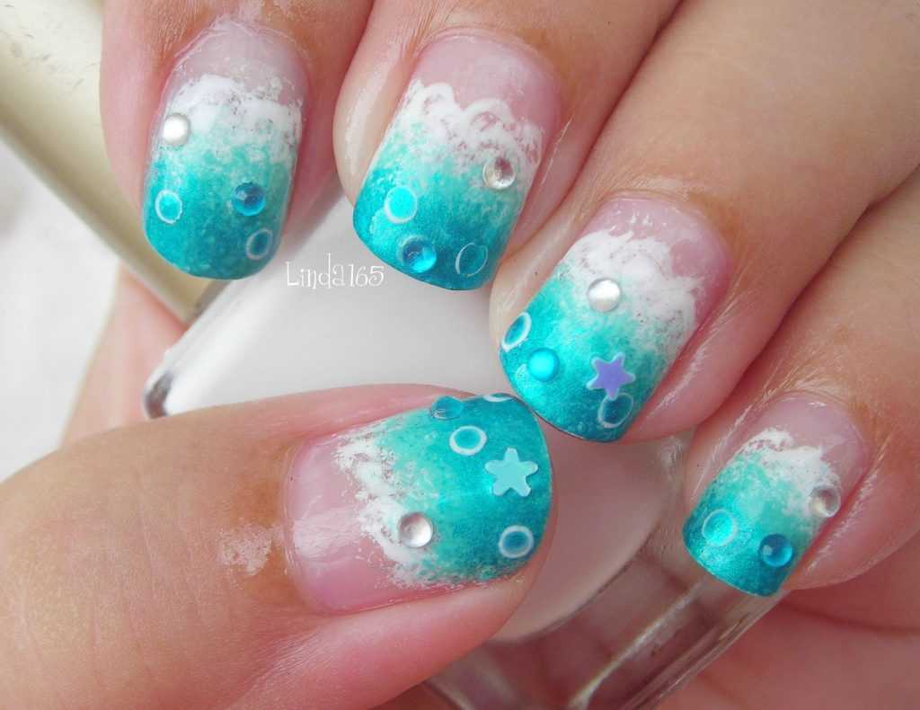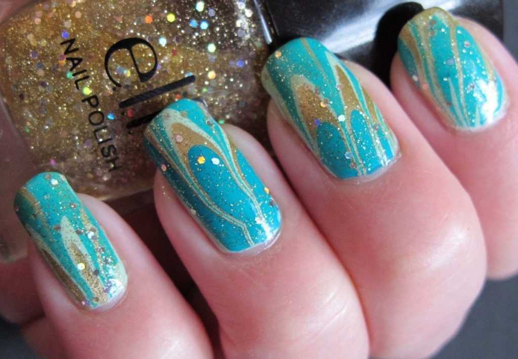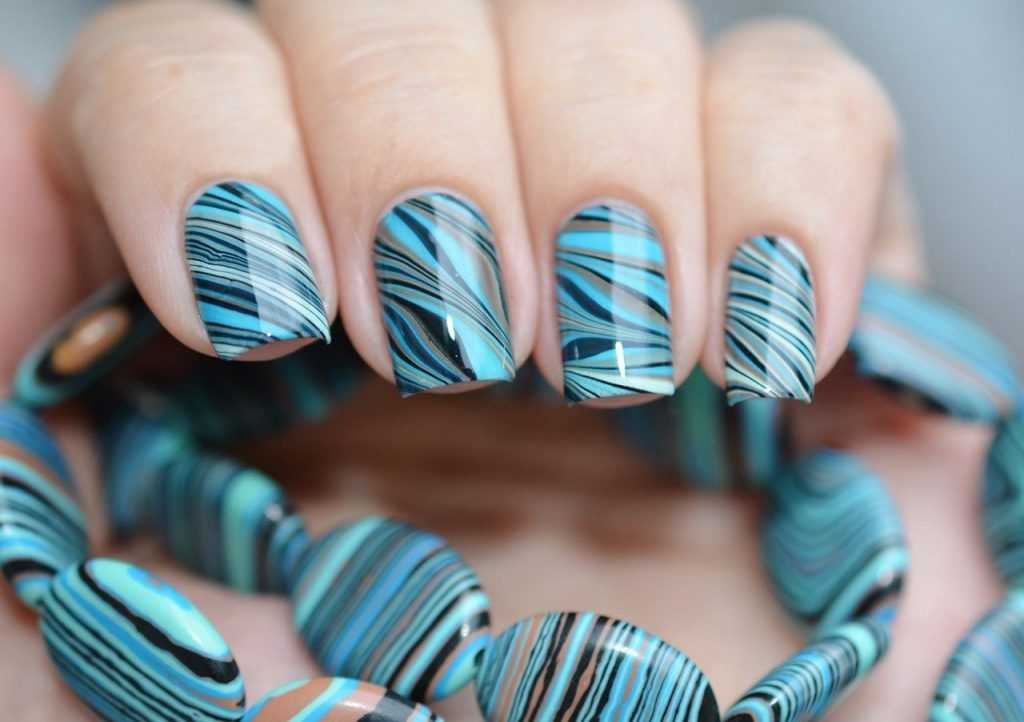 В маникюре цвет морской волны идеально подходит для создания волн на ногтях: