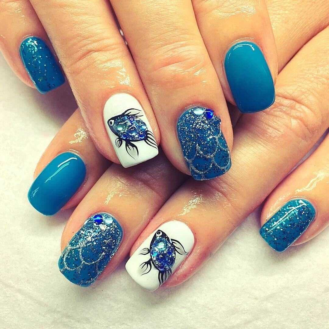 Различные оттенки синего: от темно-синего до электрического синего цвета, украсит любой морской образ, будь то обычная поездка на пляж или вечерняя прогулка по променаду. Синий актуален всегда и везде, даже если в вашем гардеробе очень мало подходящих цветов, ваш морской синий маникюр всегда будет соответствовать морской синеве и великолепному синему небу любого уголка земли, который вы выберете для своего долгожданного отпуска.