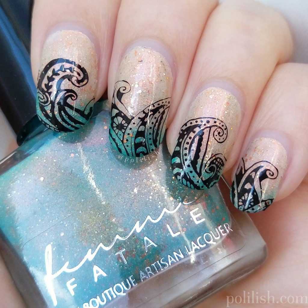 Для тех же, кто с кисточкой для педикюра на ты, можно и вовсе самостоятельно изобразить волны. Это могут быть обычные полоски в виде волны, располагающиеся от темного к светлому. Или же и вовсе художественная роспись.