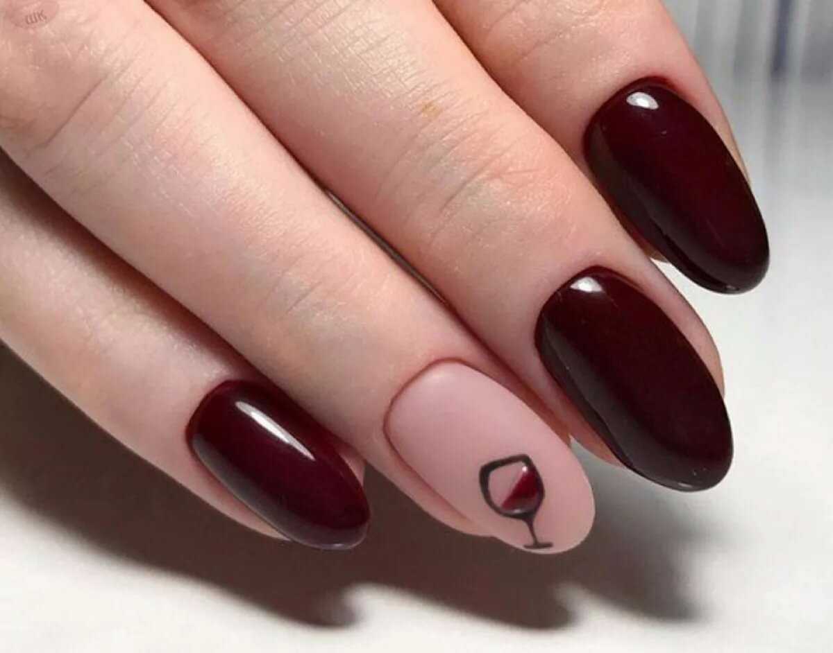Покройте все или несколько ноготков благородным винным цветом. Это идеальный вариант для повседневной носки, особенно для девушек, работающих в офисе. Такой маникюр смотрится аккуратно и не вызывающе.