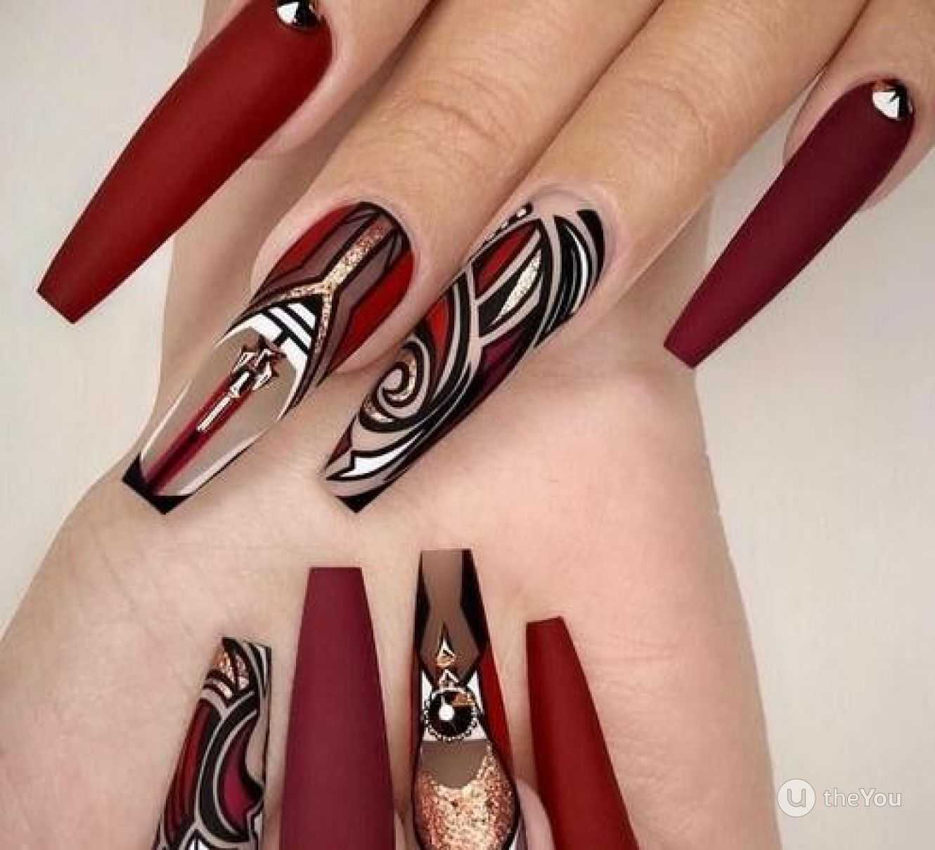 С таким великолепным цветом, как темно-красный, существует множество способов сделать дизайн уникальным и привлекающим внимание. Такой маникюр часто выбирают деловые женщины, потому что он гармонично смотрится с одеждой в офисном стиле