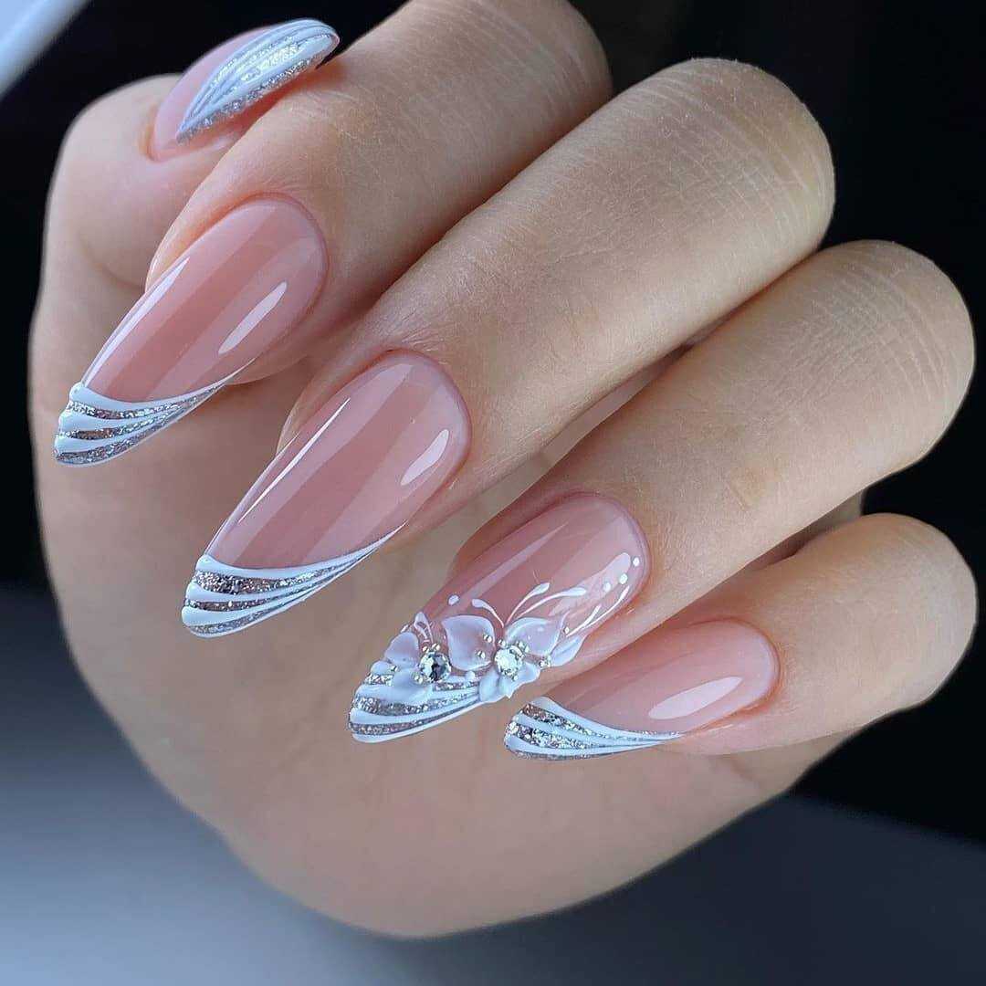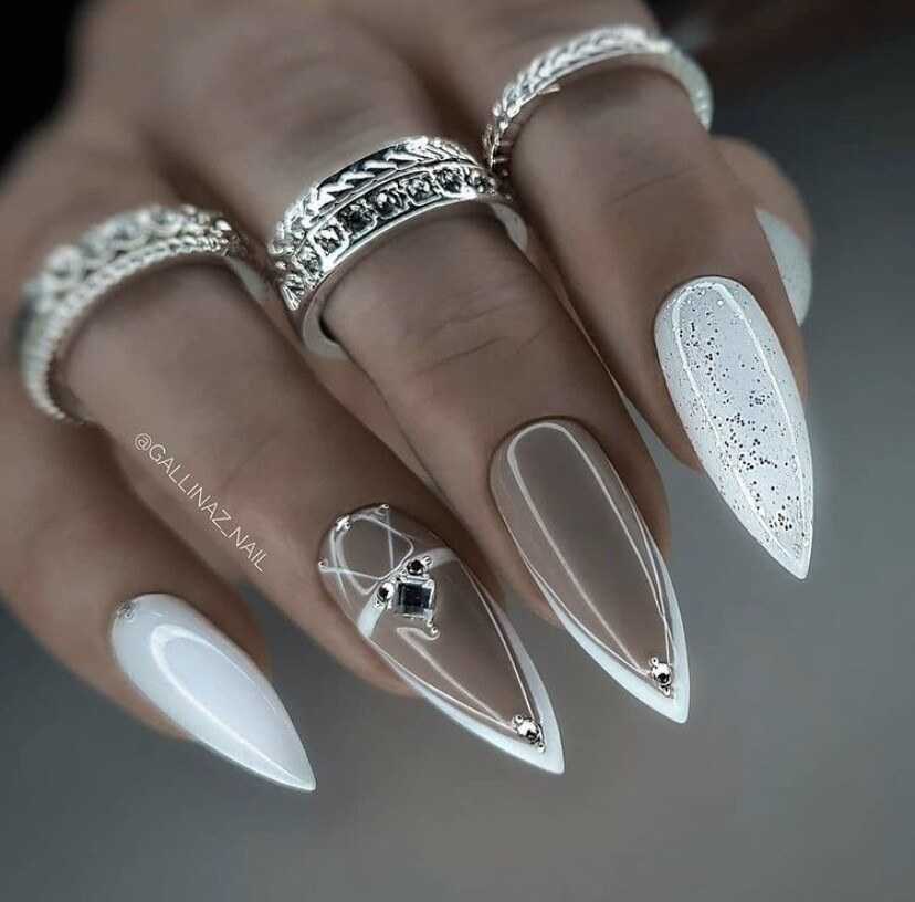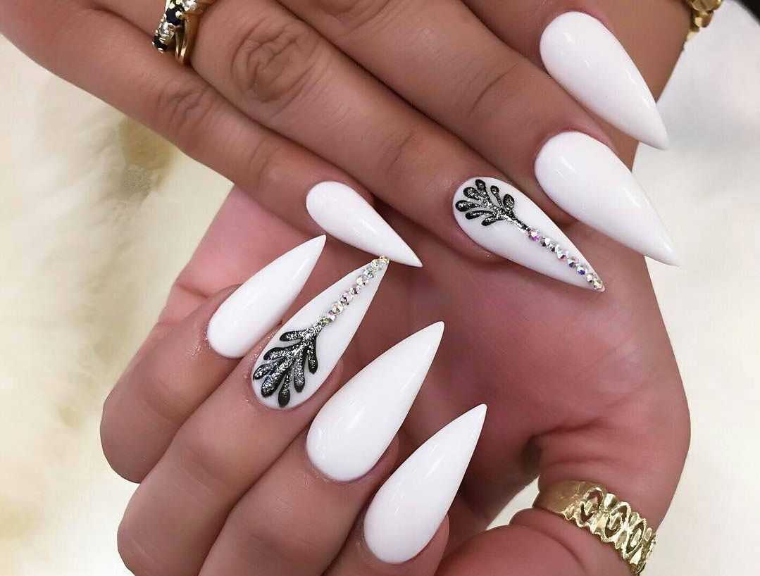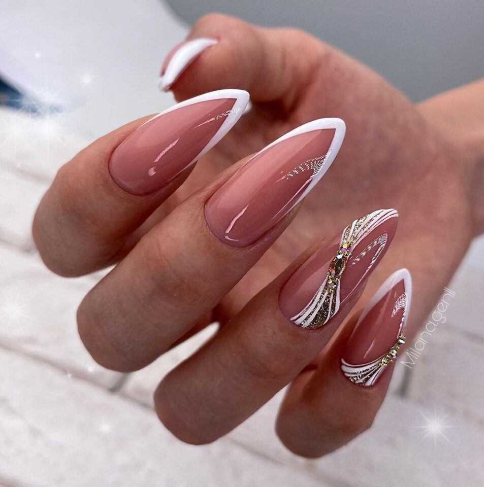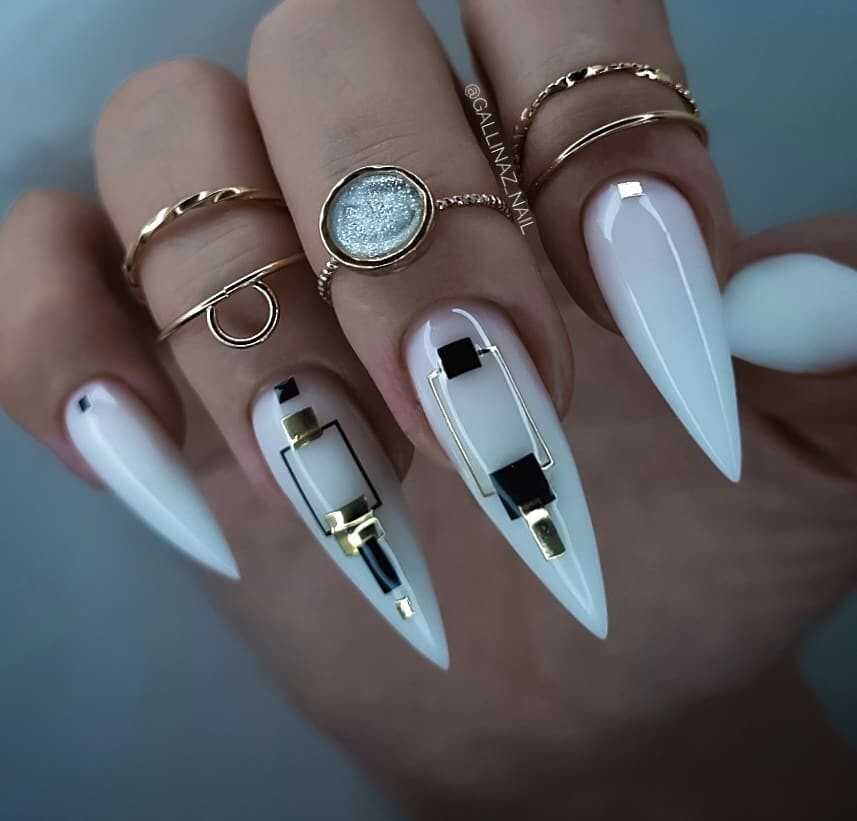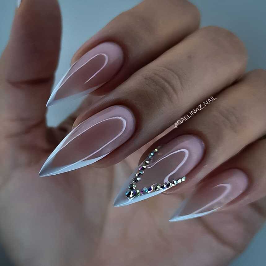 Заострённые ногти с белым маникюром
