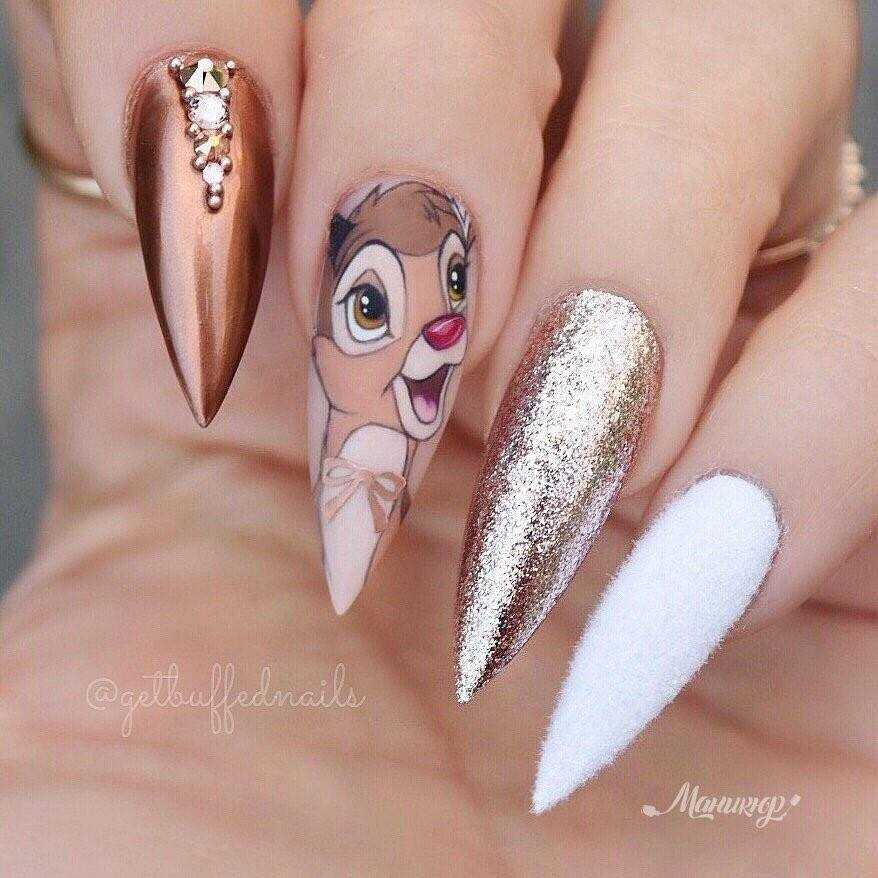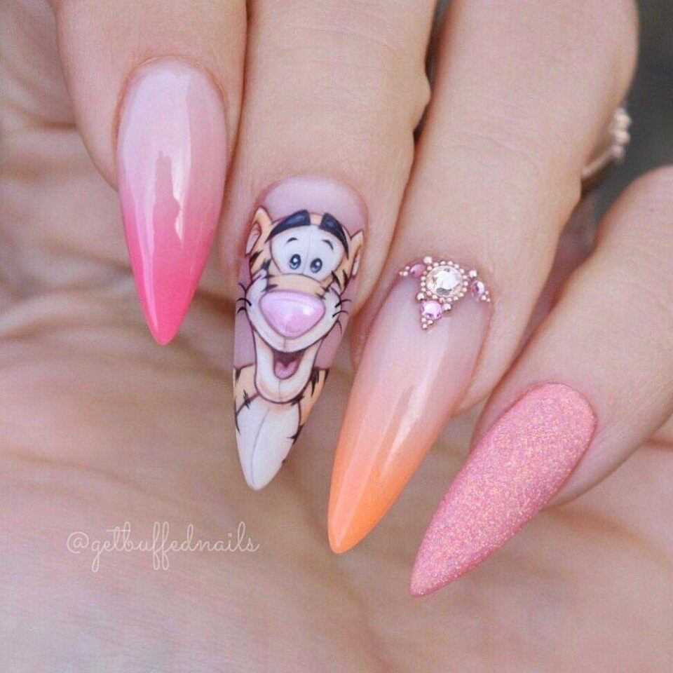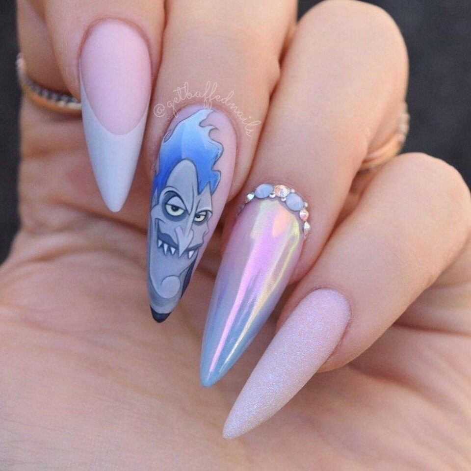 Большая длина ногтей-это полотно, которое предоставляет большой простор для возможностей. Вы можете изобразить на них все, что угодно: от персонажей фильмов и мультсериалов до готических узоров и картинок. Мастеру придется дольше потрудиться над созданием подобного дизайна, но вы будете впечатлены результатом.