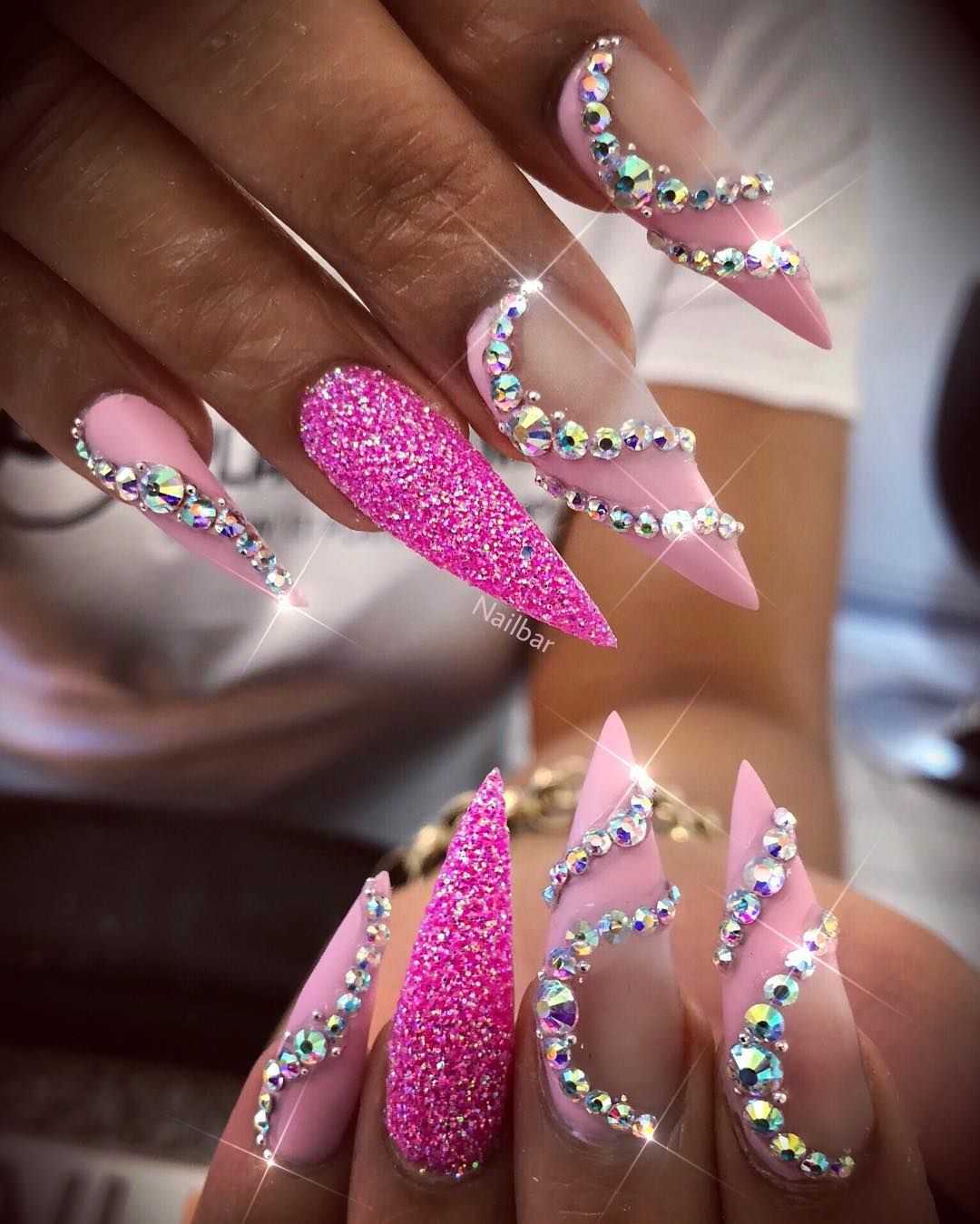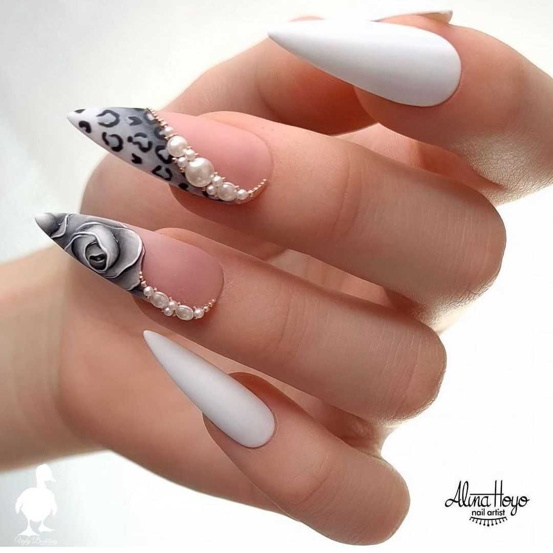 Острые ногти с модным дизайном