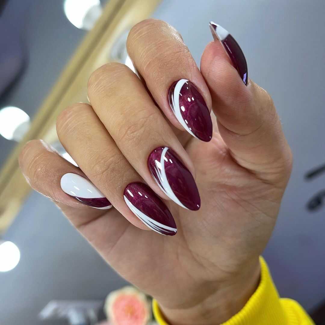Использование в маникюре всевозможного дизайна позволяет подчеркнуть индивидуальность каждого женского образа. К тому же, это прекрасная возможность воплотить в реальность собственные фантазии. А острый маникюр с дизайном можно назвать гармоничным сочетанием изящности и выразительности для каждой модницы. Подобная форма ногтевых пластин невероятно красиво смотрится в компании с природными текстурами, например, мраморными разводами либо имитацией морской глади и не менее красиво сочетается с дизайном ночного неба или же космическим маникюром. Романтичным натурам можно использовать для дополнения цветочные изображения. Всевозможные геометрические фигуры и полоски позволят ноготкам смотреться максимально оригинально. Дорого и эффектно смотрится на острых ногтях бордовый маникюр с золотистыми блёстками либо оттисками фольги. Также, как вариант, можно оформить на пластинах одну из вариаций градиента, совместить в одном маникюре сразу несколько техник, рисунки и украшения.