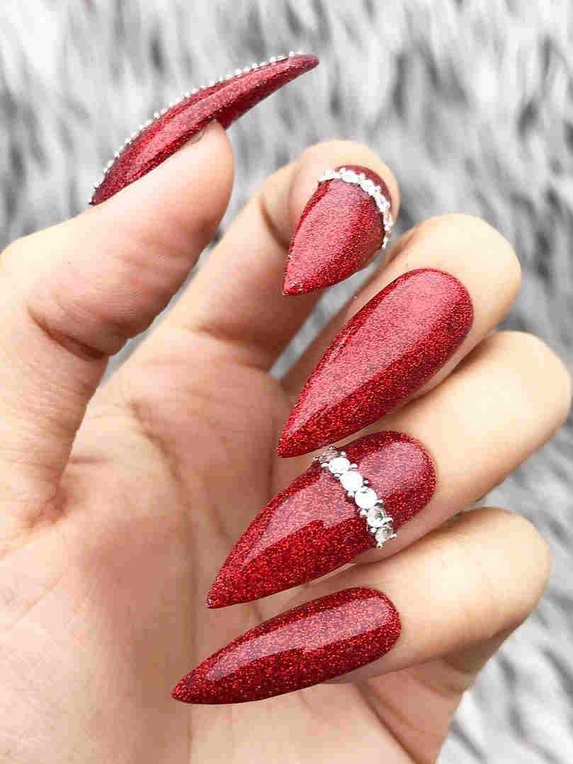 Красный маникюр на острые ногти