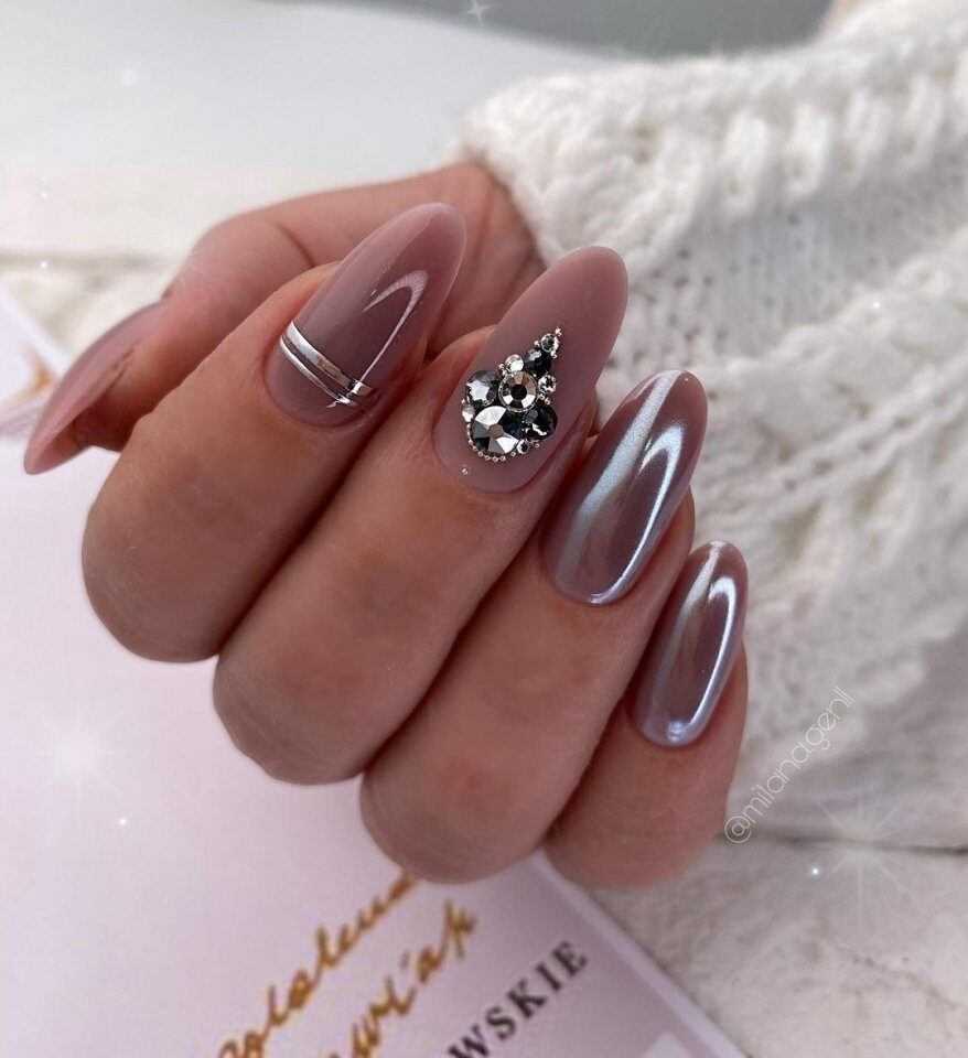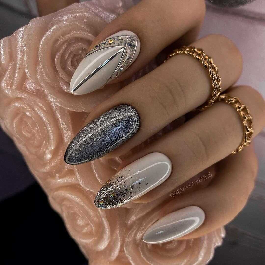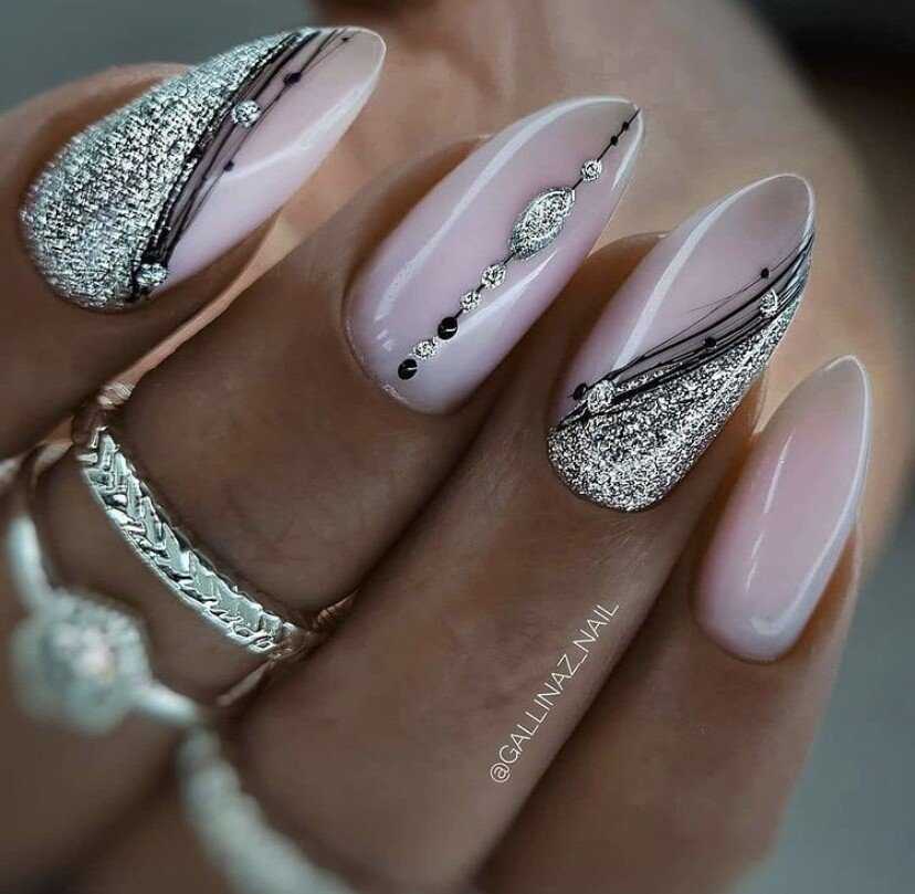 Серебристый маникюр представляет собой отличный вариант для наступающего года благодаря универсальности применения.