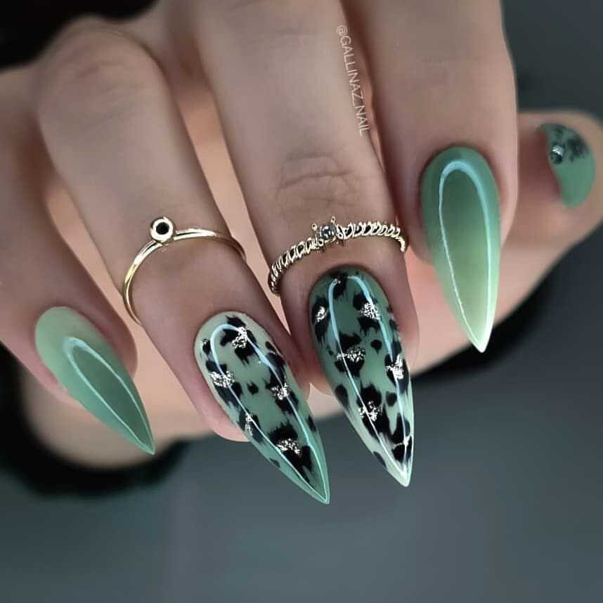2023 году лидирует тенденция анималистических дизайнов. Анималистичный плинт включает в себя змеиный, черепаховый, леопардовой и принт зебра. Вы можете реализовать их в виде полного покрытия на одном или нескольких ногтевых пластин, а также в сочетании с другими техниками. Сделайте широкую улыбку френча с леопардовым принтом. Поиграйте с расцветкой узора. Расположите животный принт только на одной половине ногтевой пластины, а другую накрасьте другим цветом. Чтобы дополнить образ добавьте небольшое количество фольги, или кристаллов.