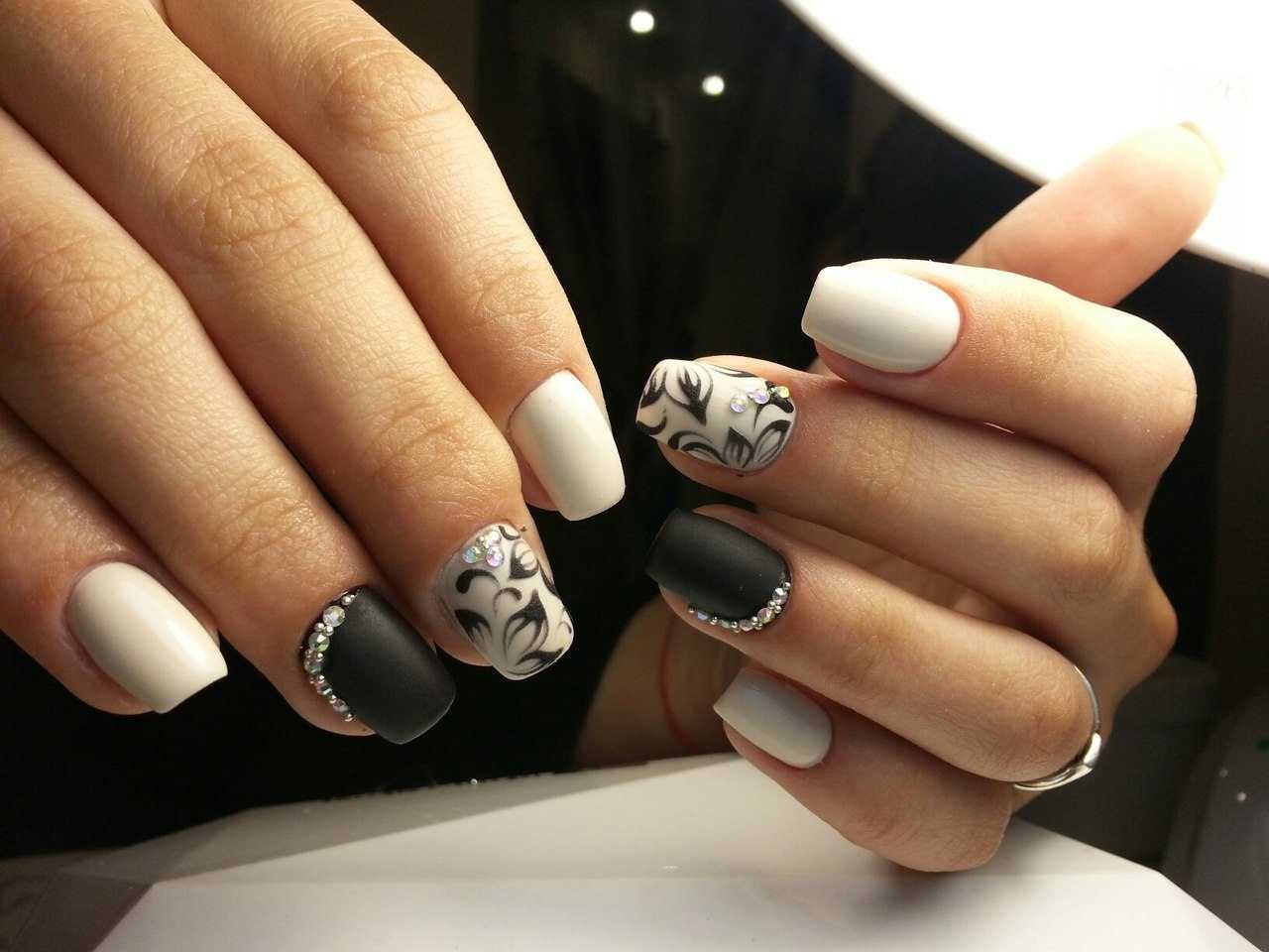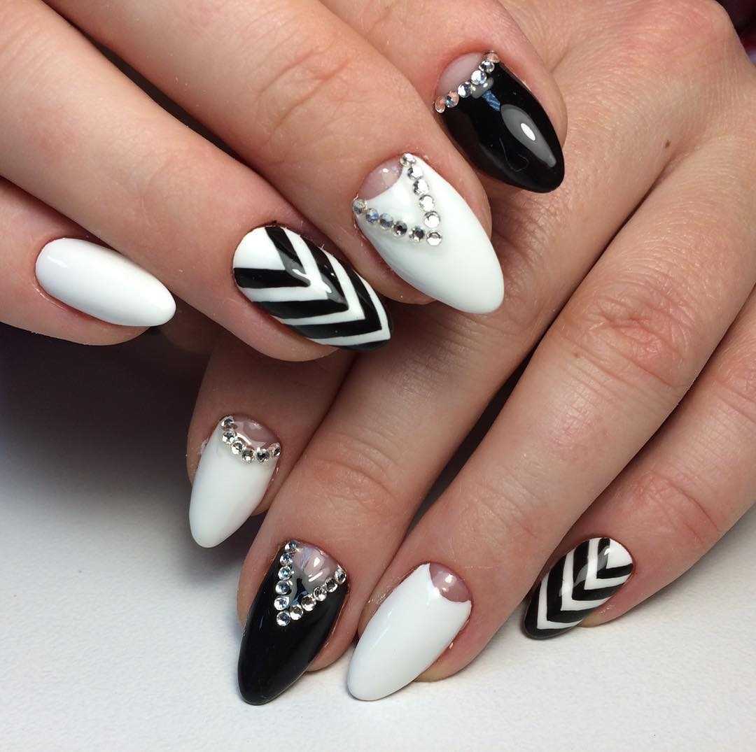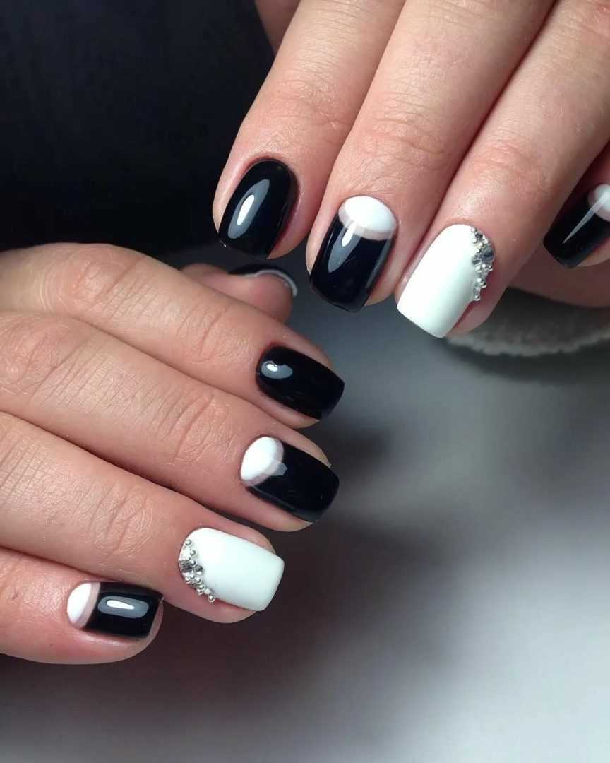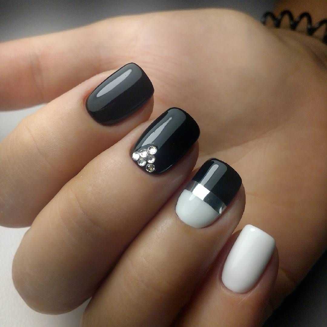 Черно-белый маникюр с дизайном: идеи рисунков, страз, блесток на ногтях