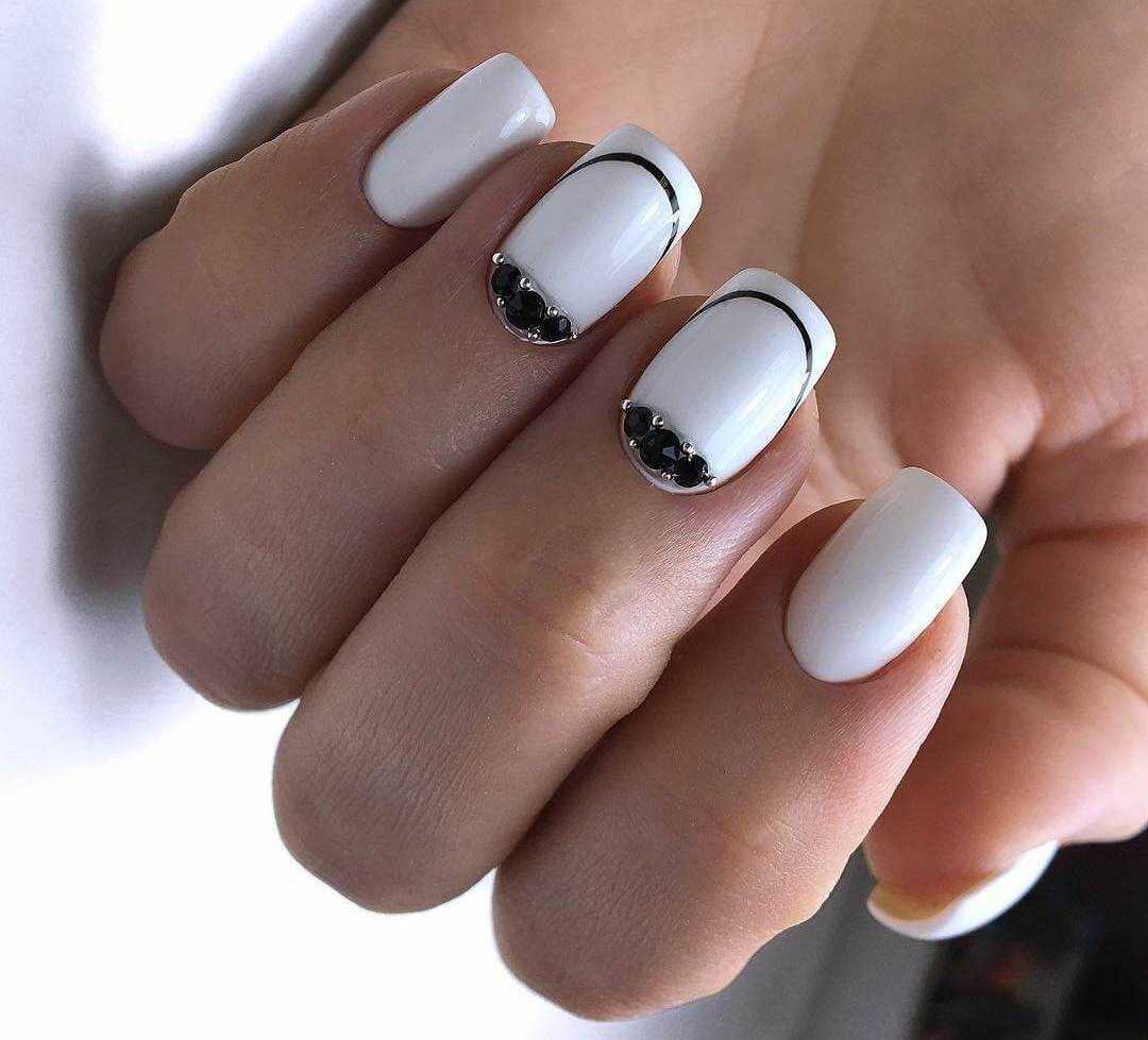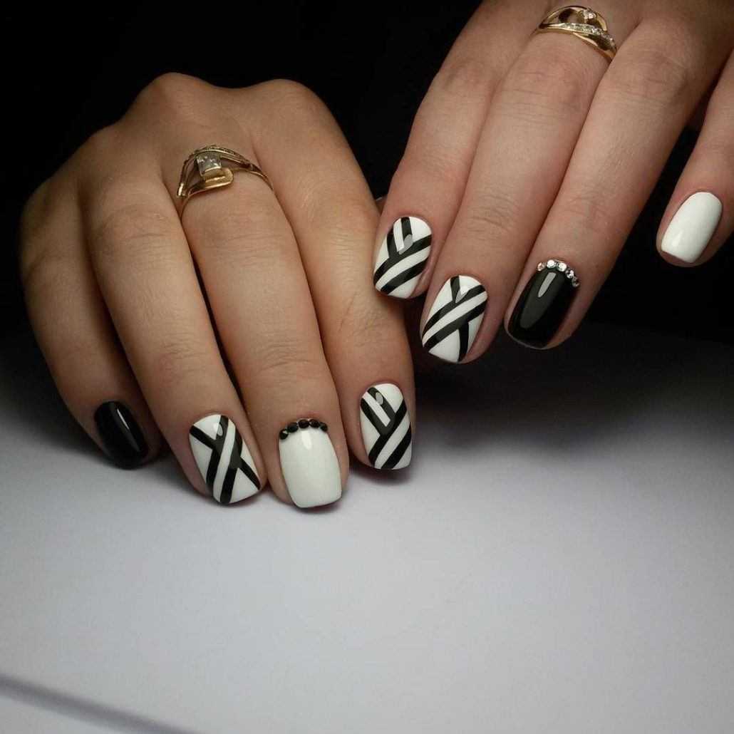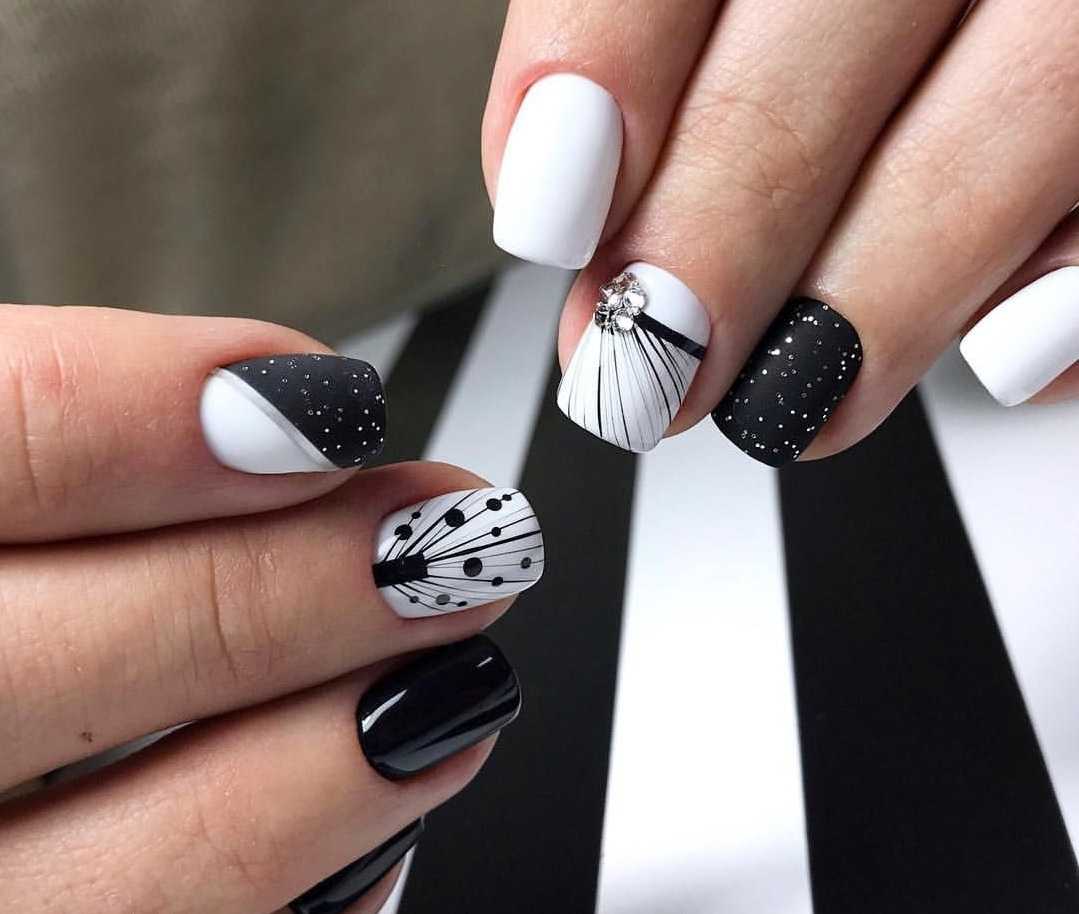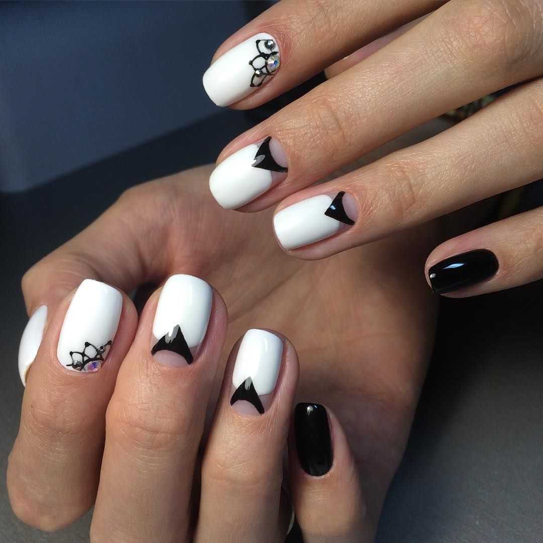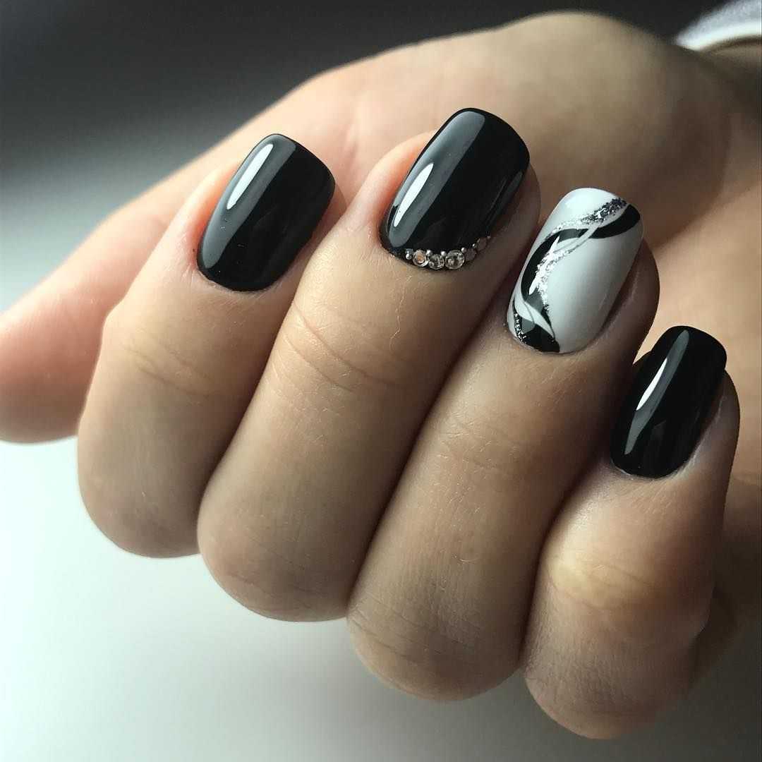 Черно-белый маникюр с дизайном: идеи рисунков, страз, блесток на ногтях