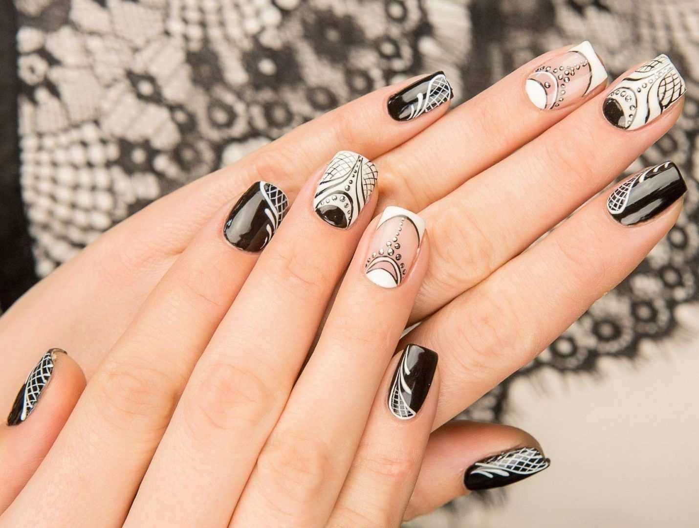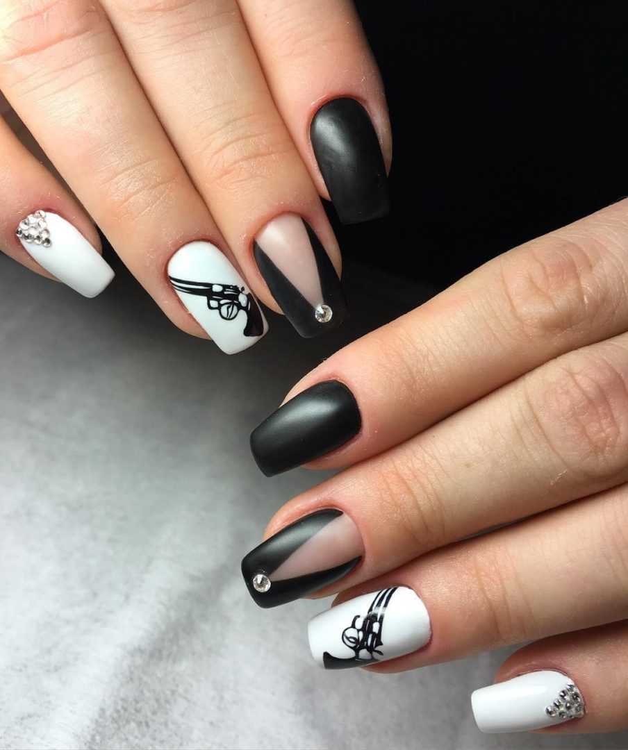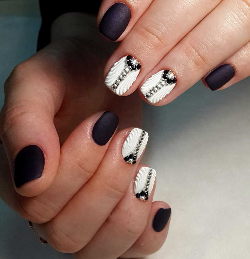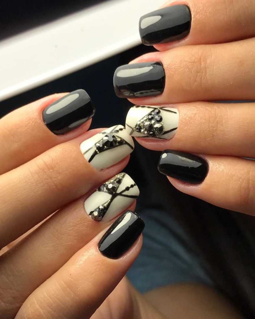 Черно-белый маникюр с дизайном: идеи рисунков, страз, блесток на ногтях