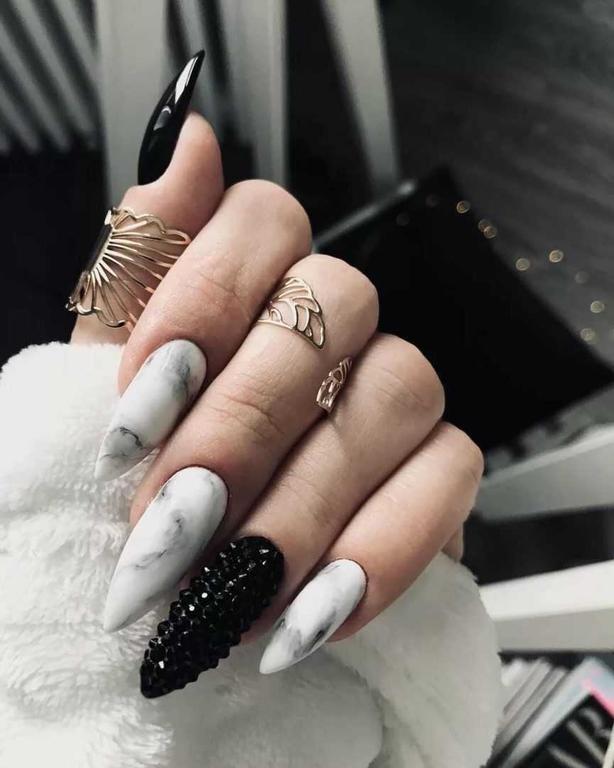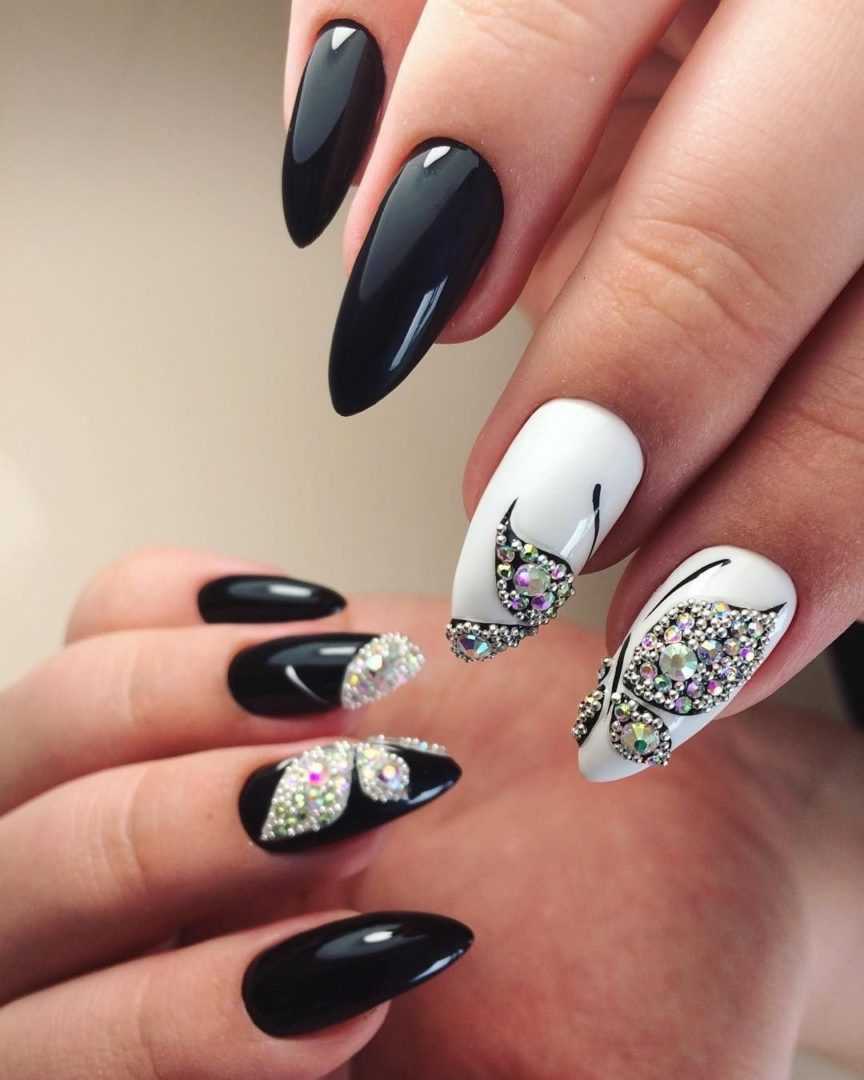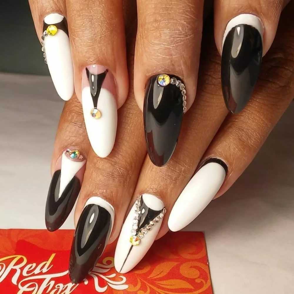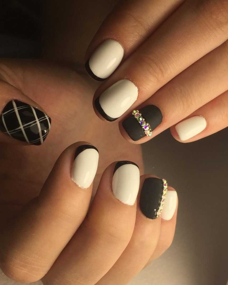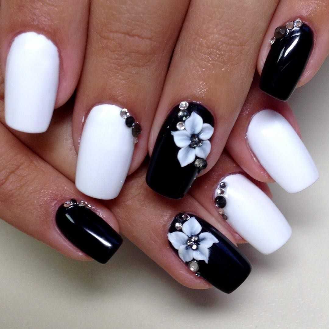 Черно-белый маникюр с дизайном: идеи рисунков, страз, блесток на ногтях