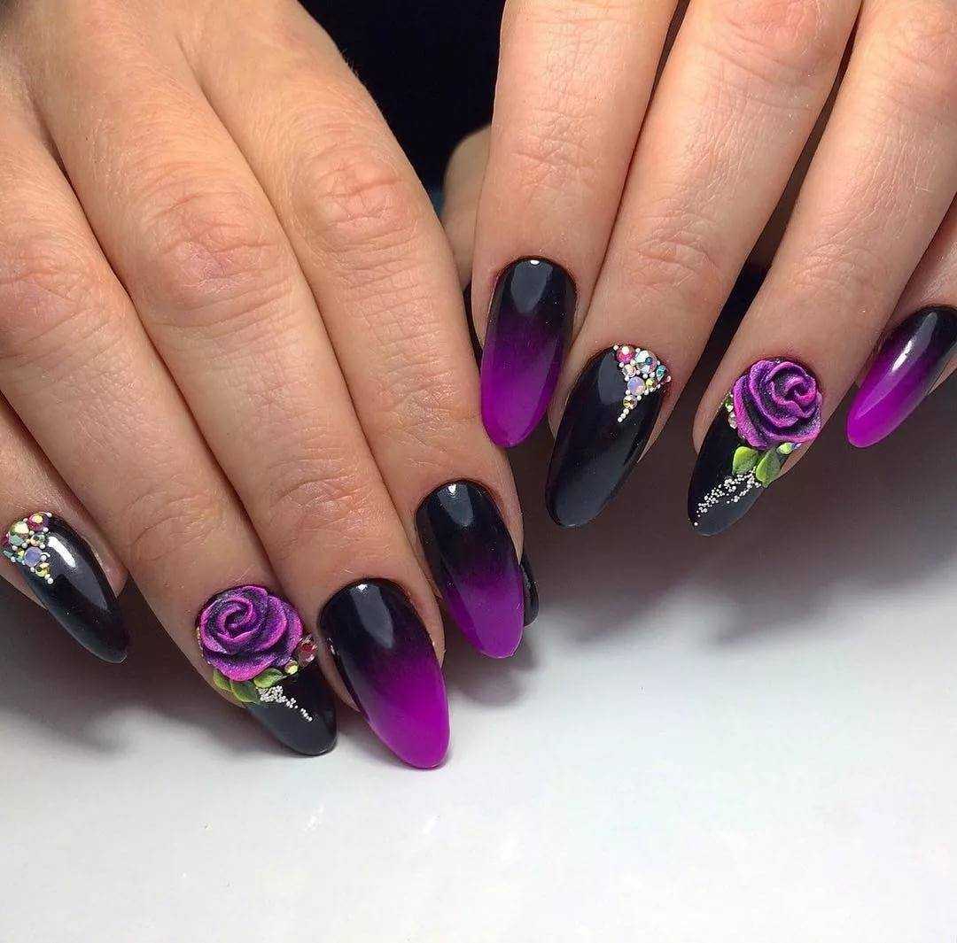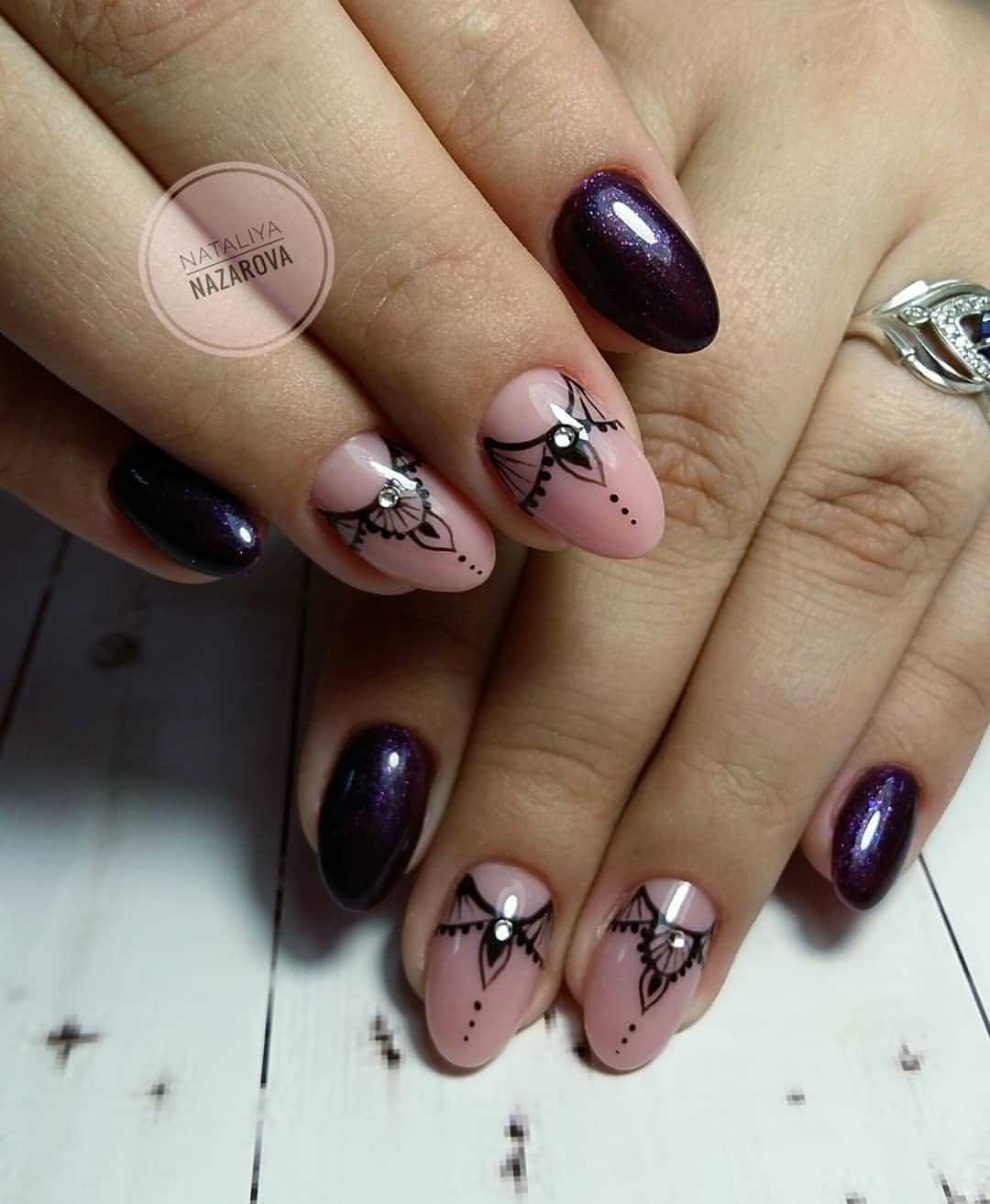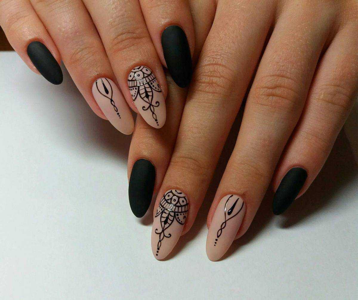 Еще несколько лет назад такое покрытие считалось мрачным, а теперь пользуется популярностью, позволяя создать необычные и очень стильные дизайны. Черный лучше всего сочетается с золотом, серебром, нюдом и белым. Также популярны оттенки коричневого, фиолетового, зеленого, вишневого и синего, которые отлично выглядят в одиночку и с декором, а также подходят для матового покрытия.