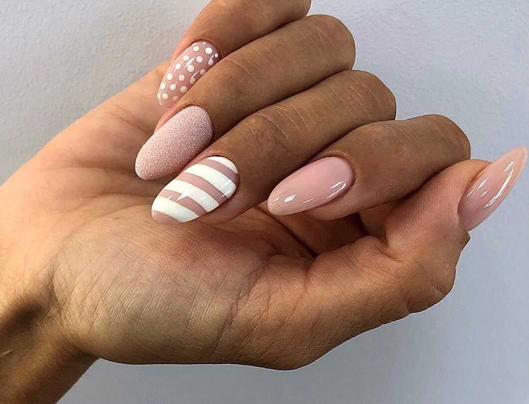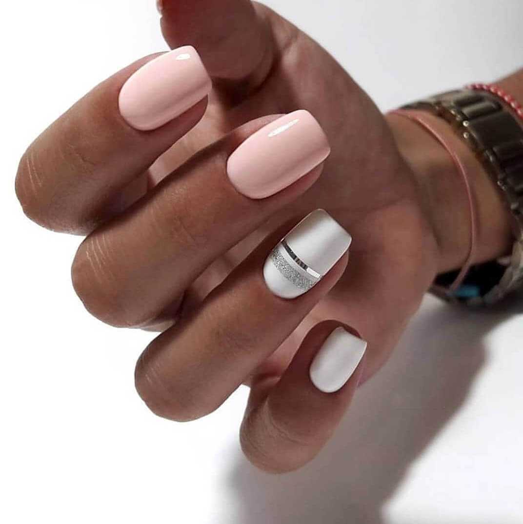 Такие ноготки будут выглядеть особенно нежно и изящно. Для того, чтобы подчеркнуть женственность обладательницы такого маникюра, мастер может остановить выбор на розово-белой гамме.